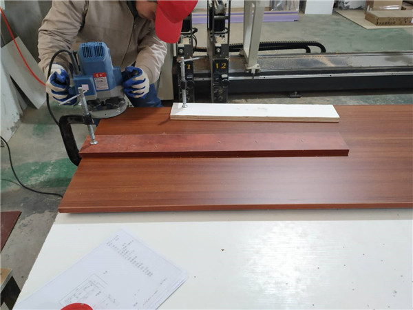 開始制作啦,紅棕色的板材是平安樹柚木色實木多層板,用來制作書桌和門板,板材已經(jīng)封好邊啦,下一步要打孔了,