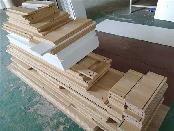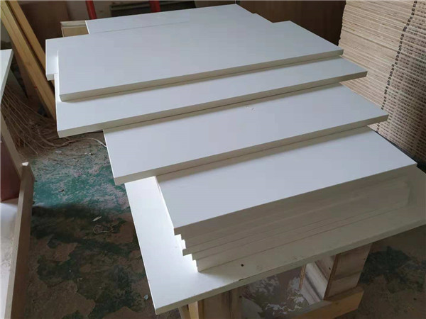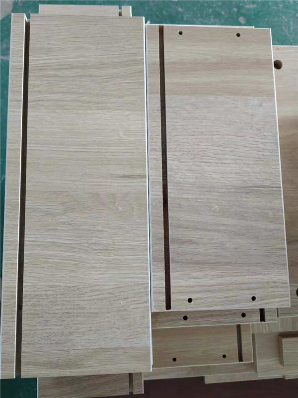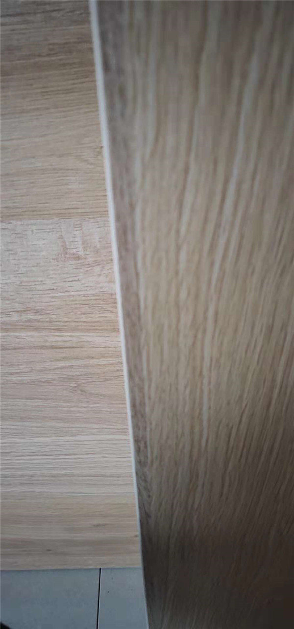 圖3是封邊完畢的沙發(fā)邊柜的柜門板,柜門板使用平安樹暖白色實(shí)木多層板制作,柜體板使用平安樹清水橡木色實(shí)木多層板制作。