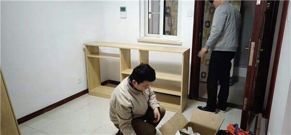 衣柜板打孔中