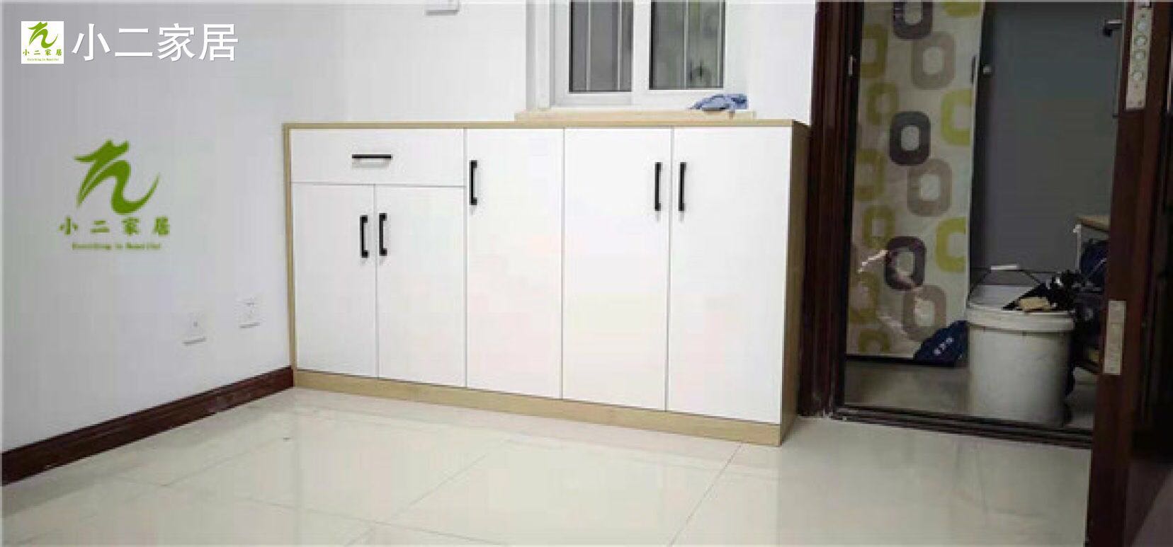 廚房櫥柜板已經(jīng)封邊完畢啦,封邊條上印有小二家居的logo.