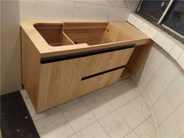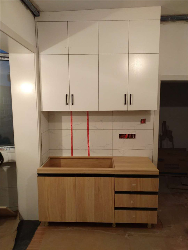 柜子已經(jīng)裝好啦,還差臺面了,清水橡木色柜體配上暖白色柜門的經(jīng)典搭配,效果很百搭哦!