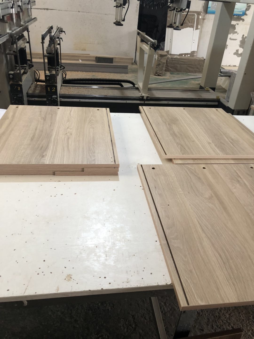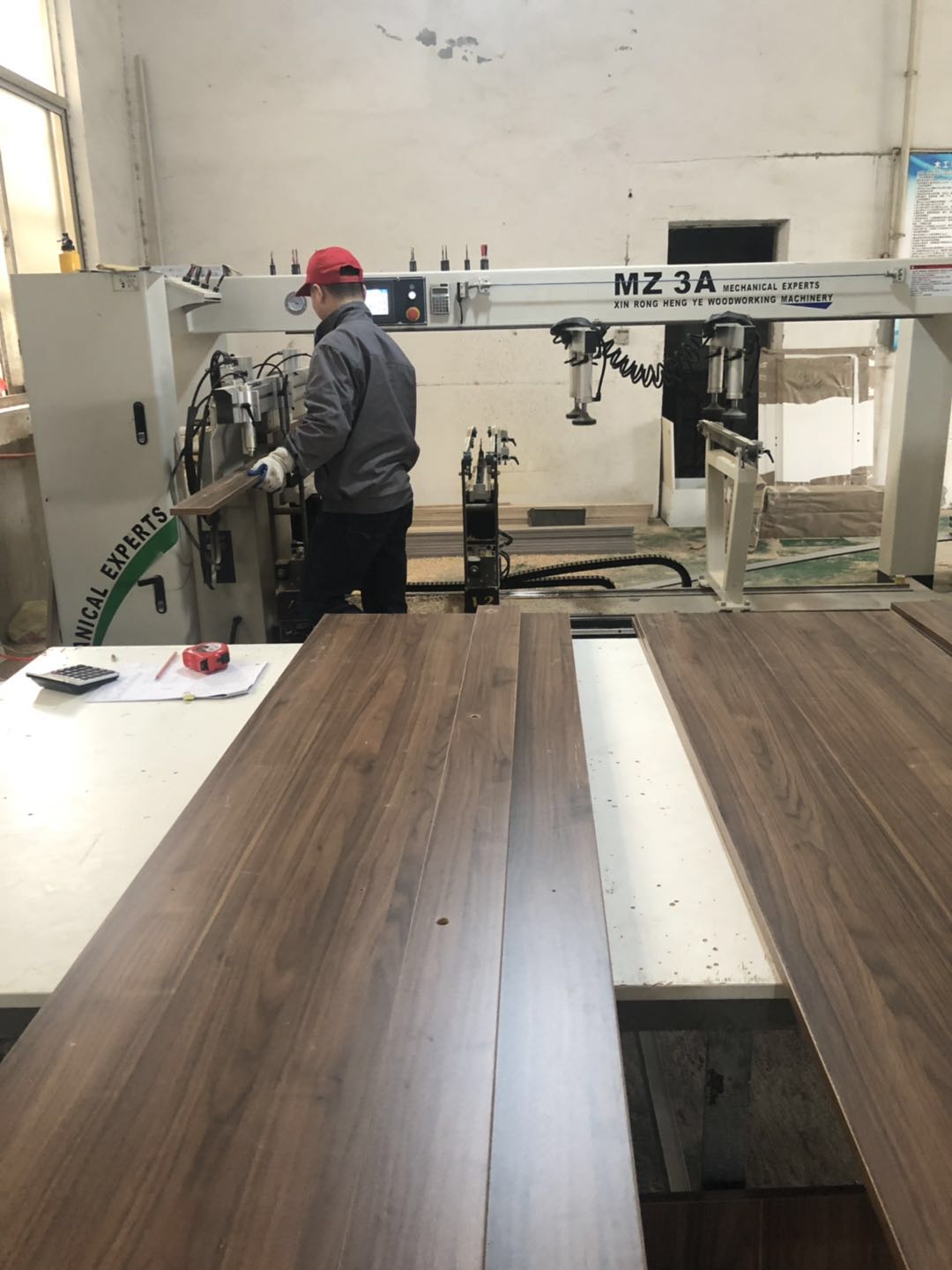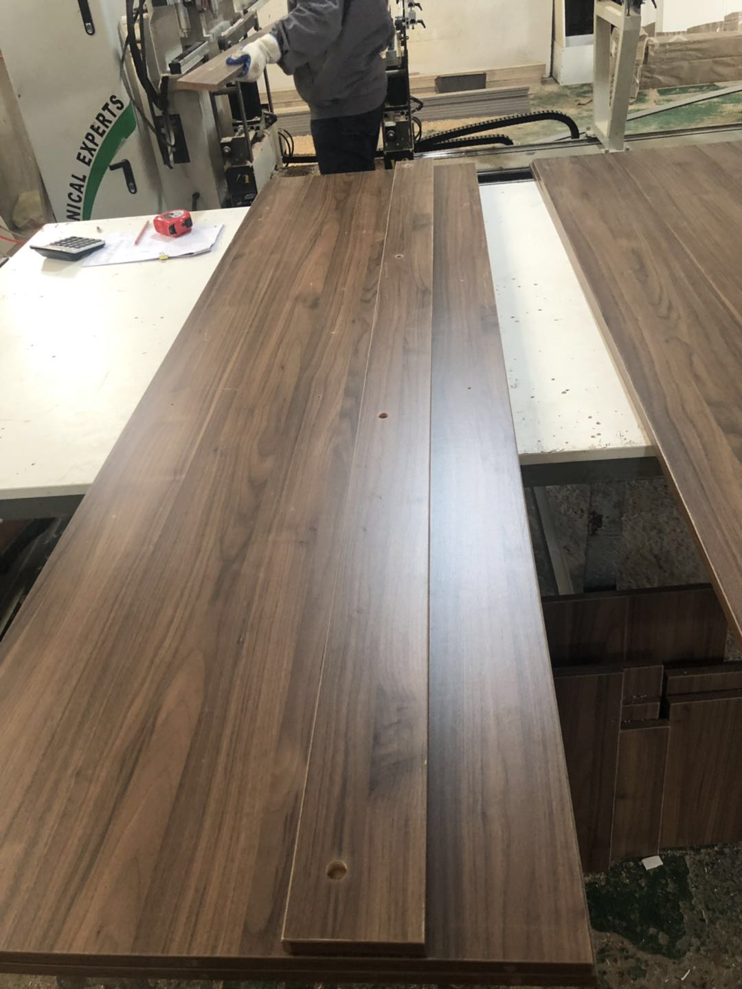 開始制作啦,衣柜裁板中,板材使用平安樹實木多層板制作,有高級藍光防偽標識。