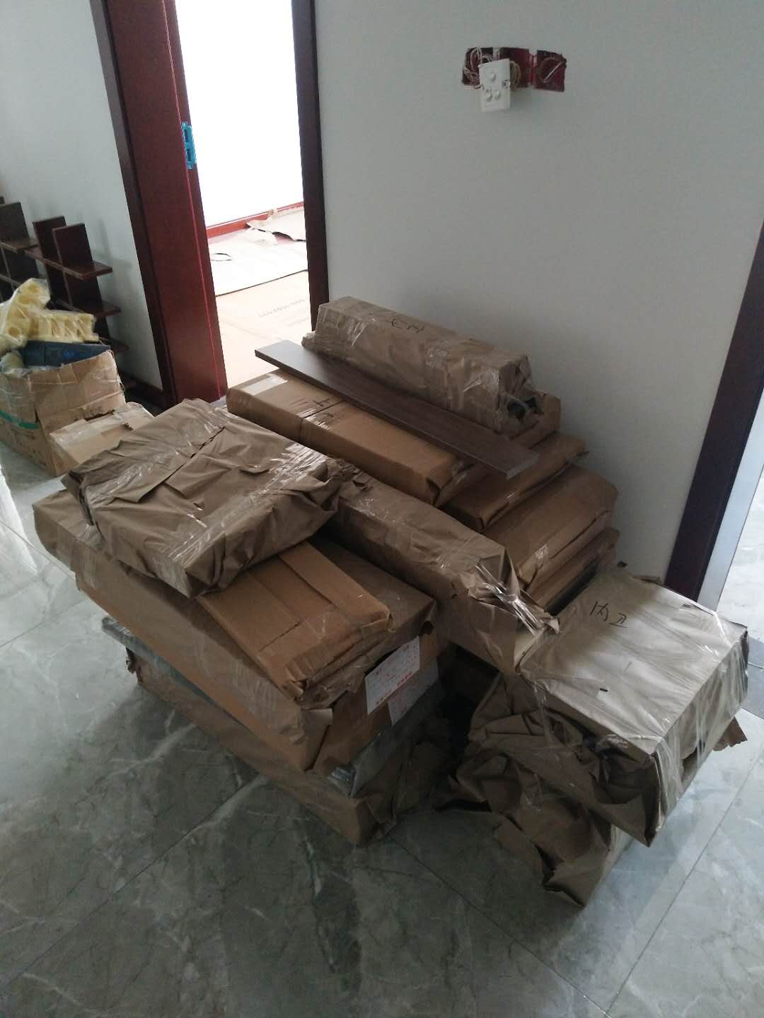 所有的板材已打包好,下午就去送貨了,天氣太熱師傅們辛苦了
