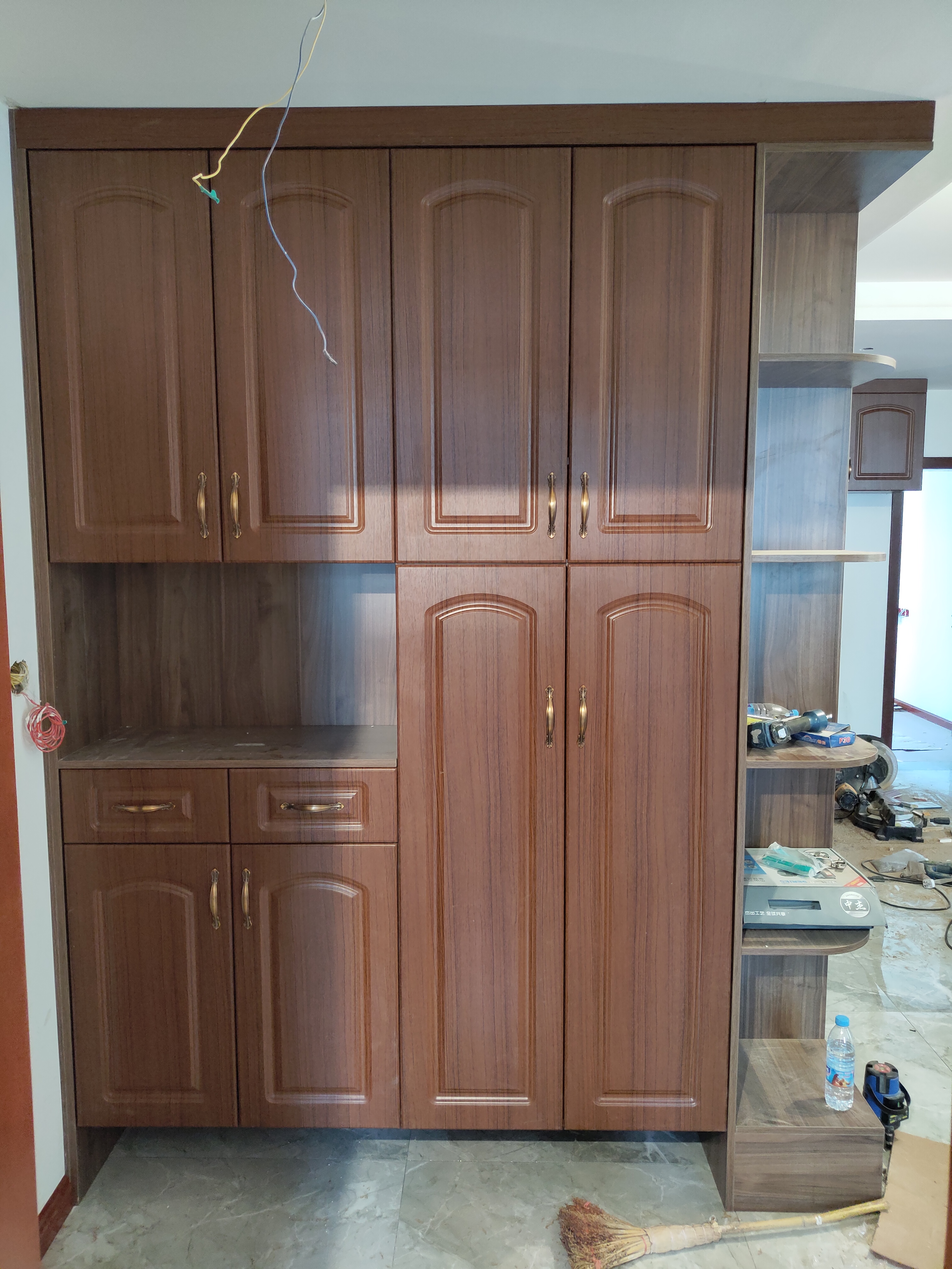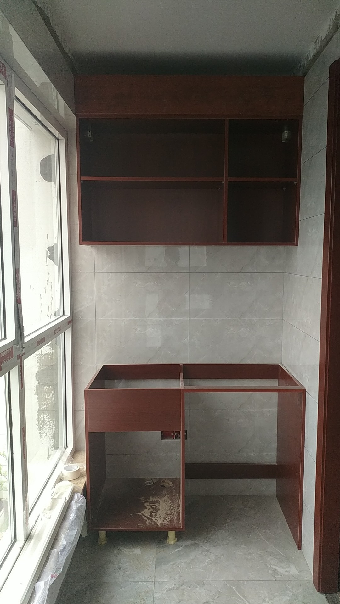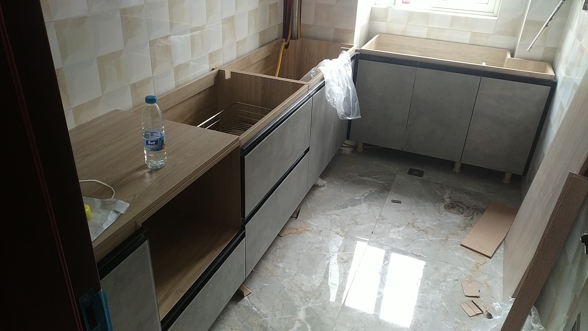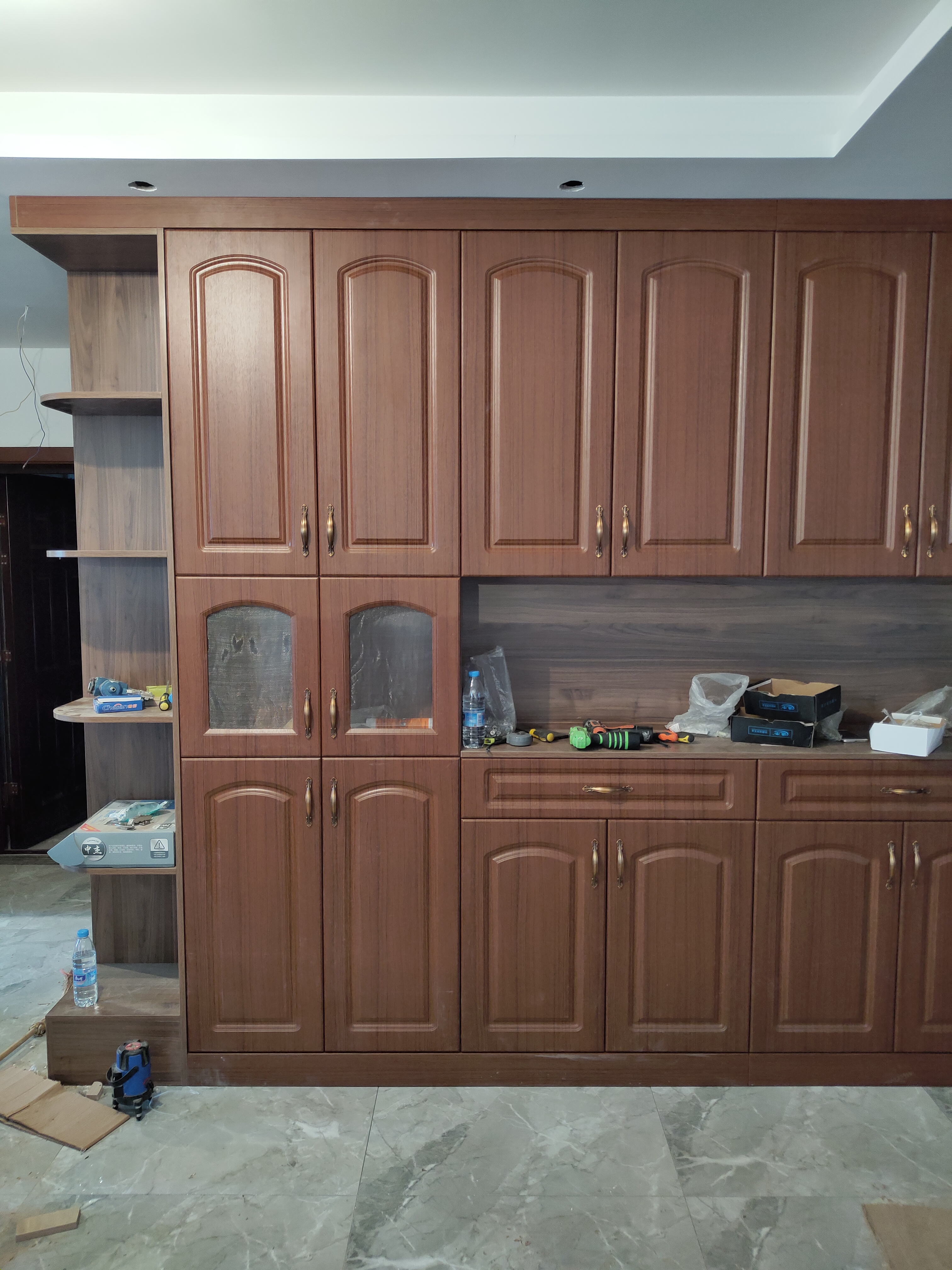 柜子都已經裝好了,還差臺面,整體效果看著還不錯。
