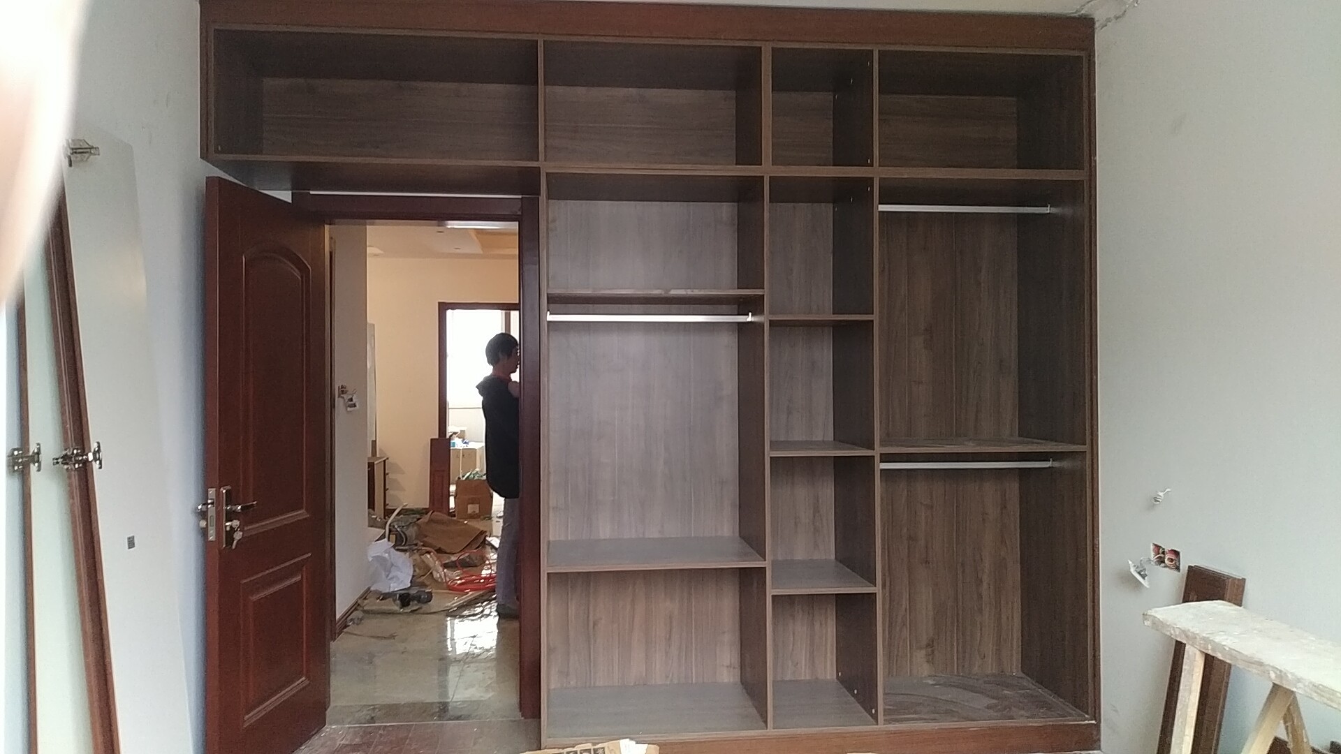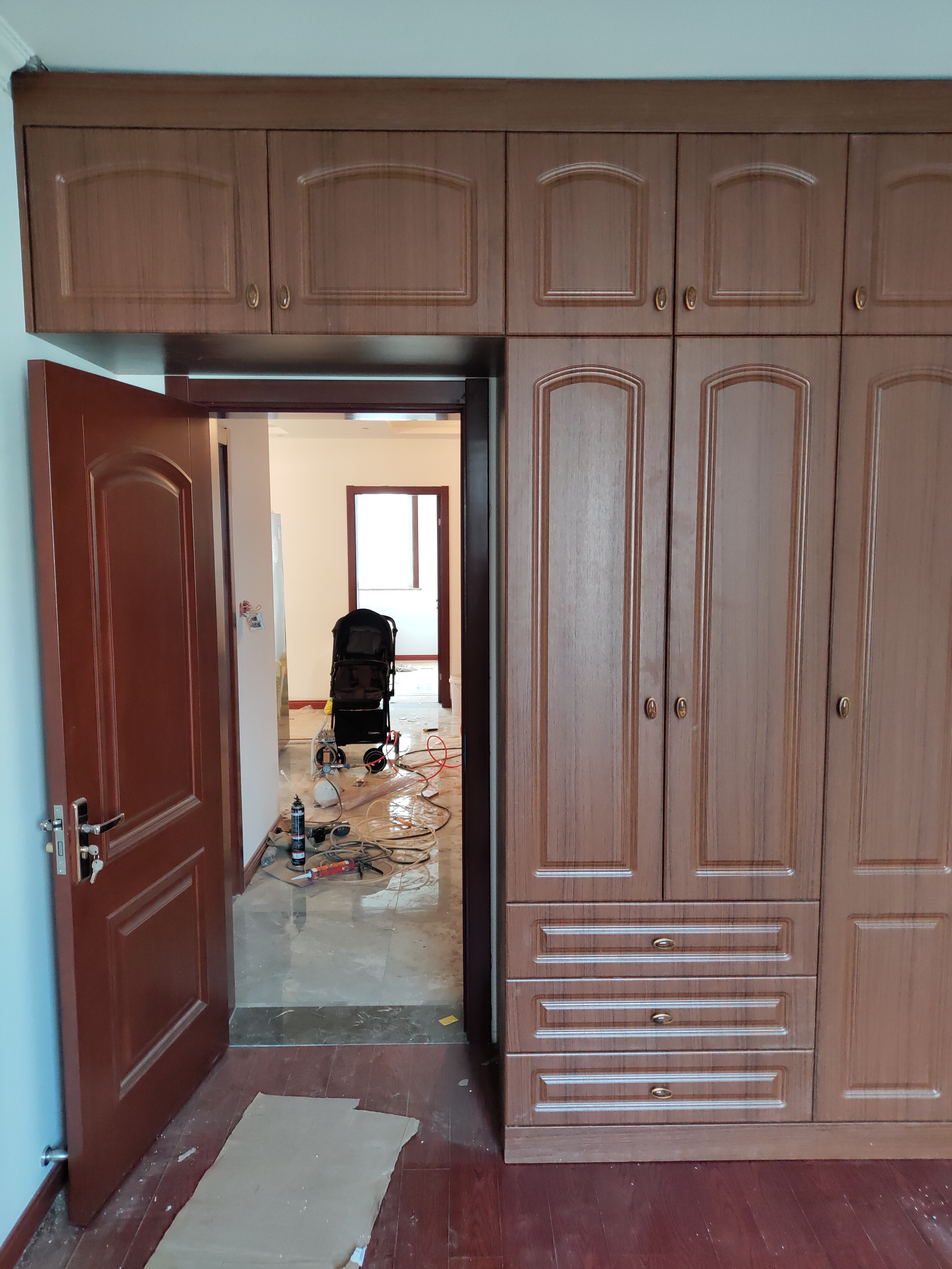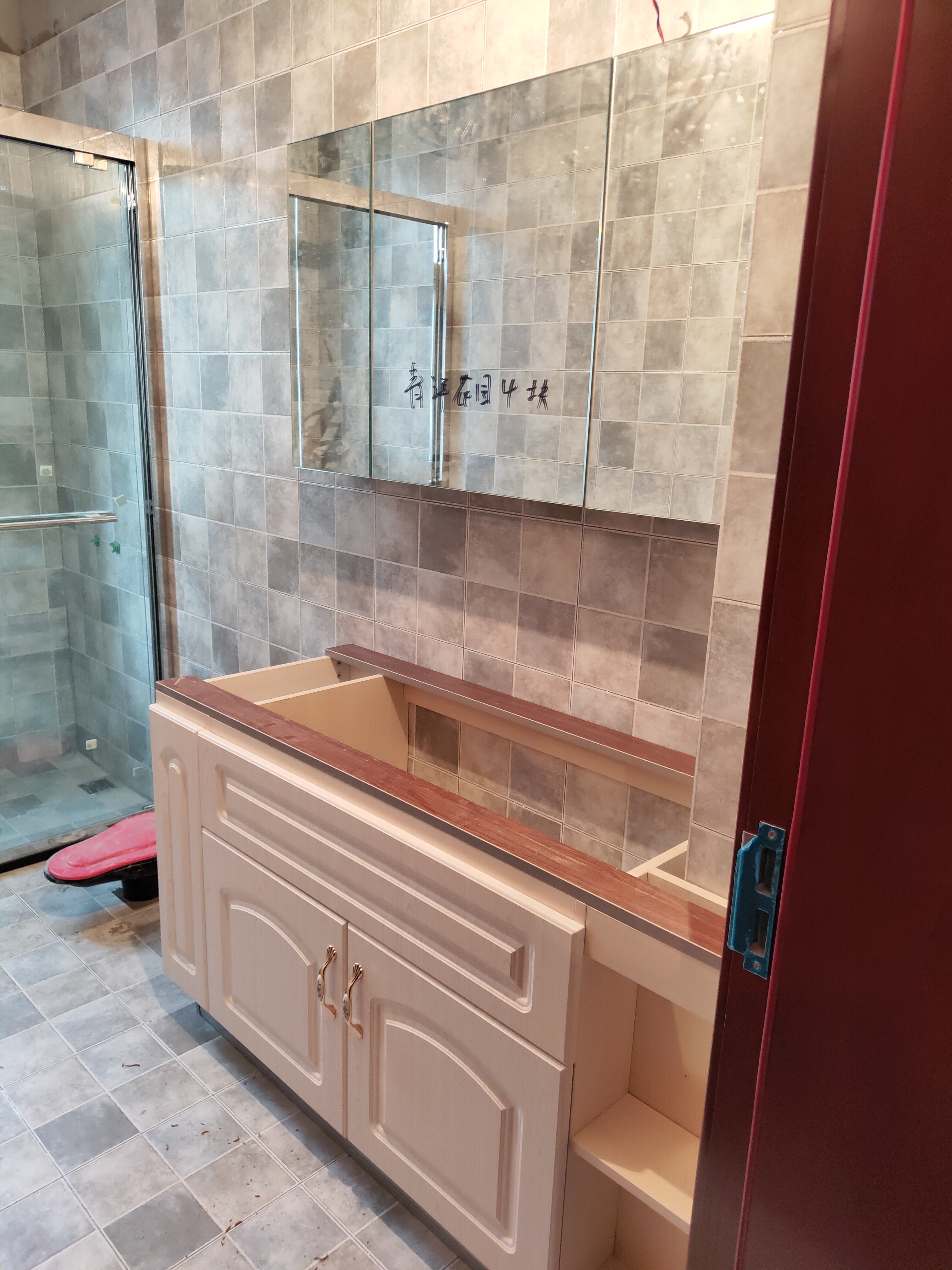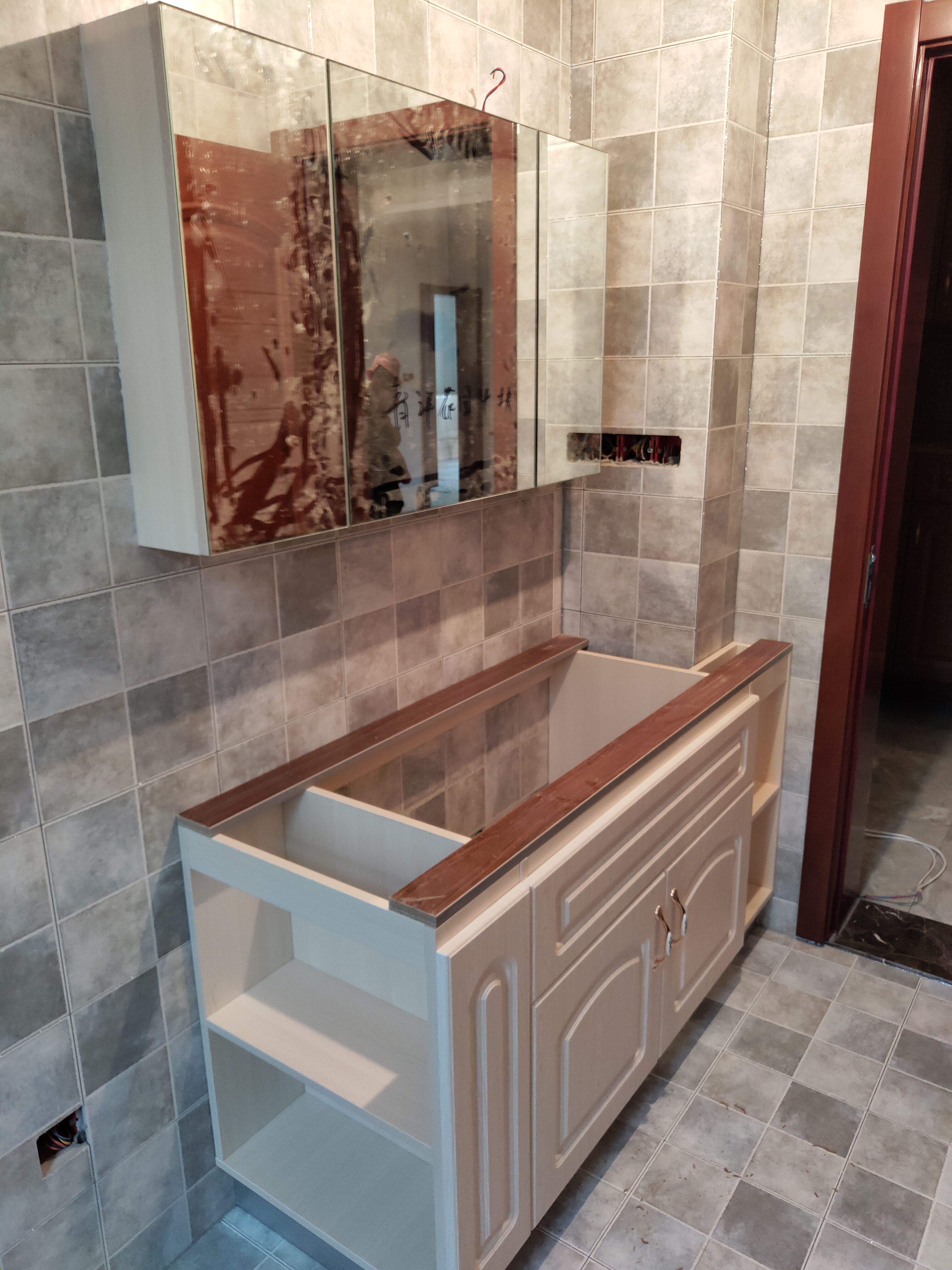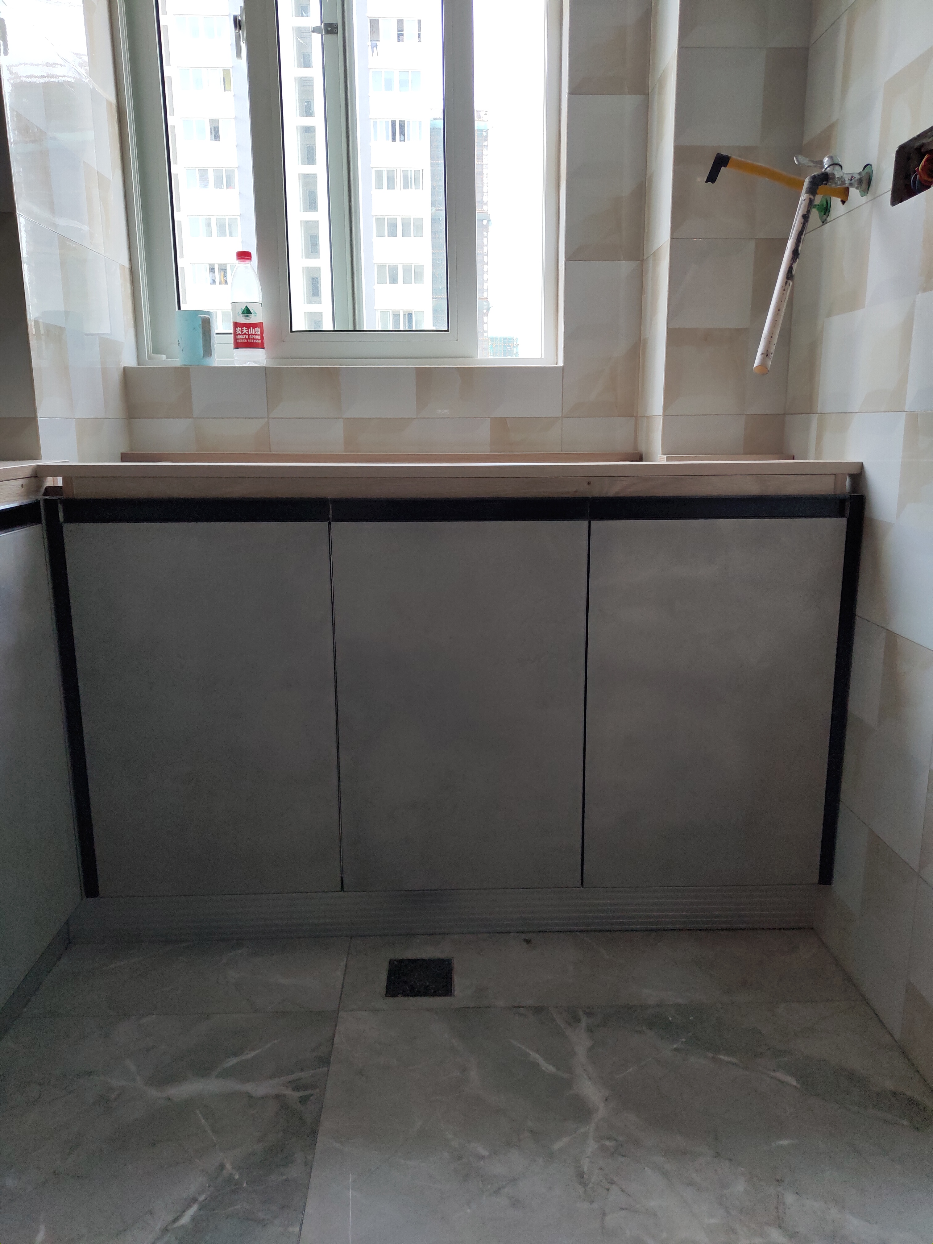柜子都已經裝好了,還差臺面,整體效果看著還不錯。