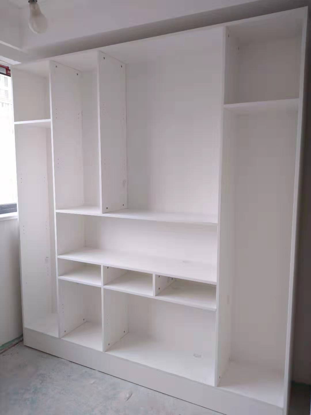 開板了,板材使用平安樹實(shí)木多層暖白色E0級(jí)制作,專業(yè)的設(shè)備裁板和打孔,沒(méi)有爆邊~