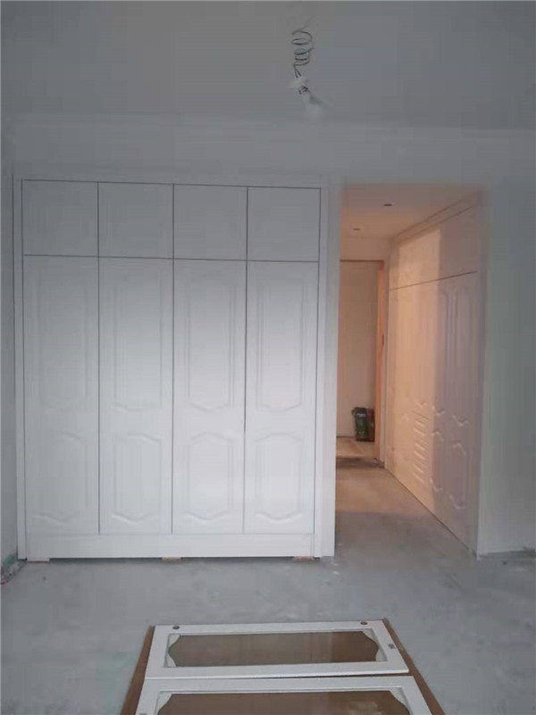 柜門基本安裝到位,接下來(lái)就是處理細(xì)節(jié)方面了,這就考驗(yàn)安裝師傅手藝的時(shí)候到了,