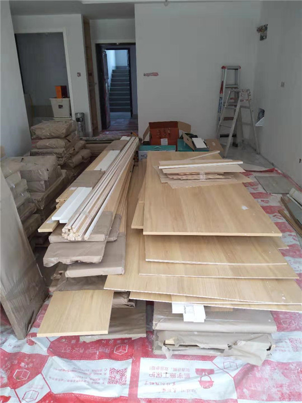 客戶家采用的是平安樹實木多層板,板材上都有防偽標志的哦!真材實料。每塊板上都有小標簽方便后期安裝師傅安裝。
