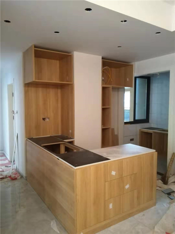 師傅兩天的時間基本把柜體拼裝完畢了,速度真快。這柜體顏色整體效果蠻洋氣的,耐看。一起期待最后的安裝效果吧!