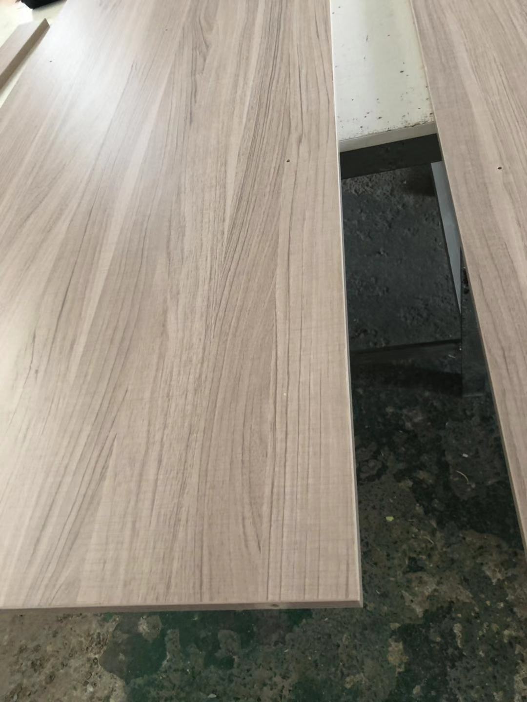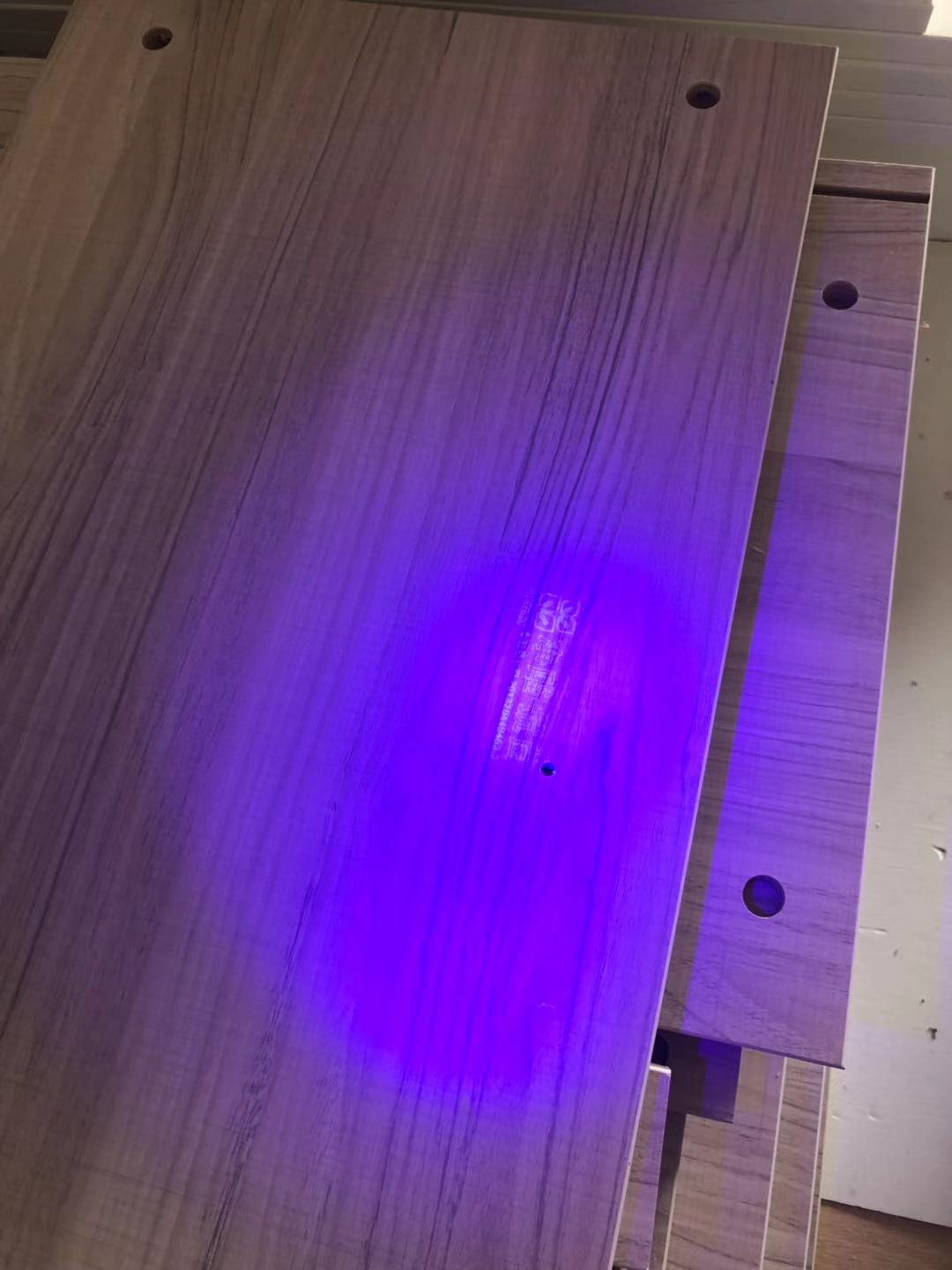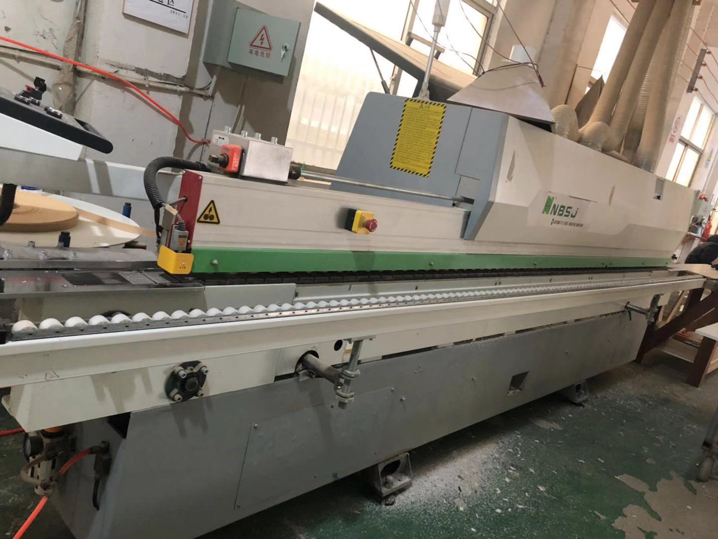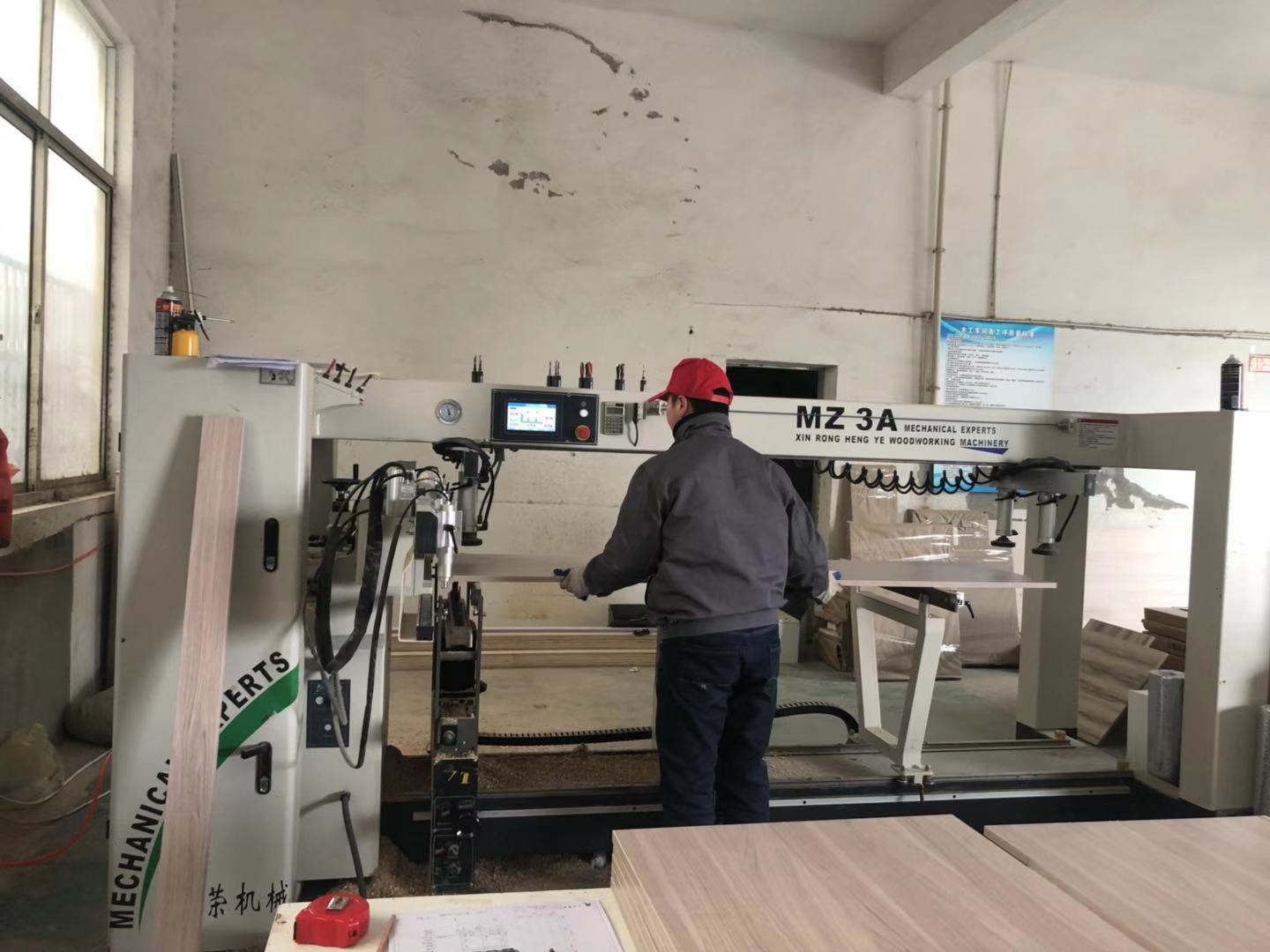 接下來開始封邊了,板材使用平安樹E0級,有高級藍光防偽哦,封邊機器溫度高達200°C哦
