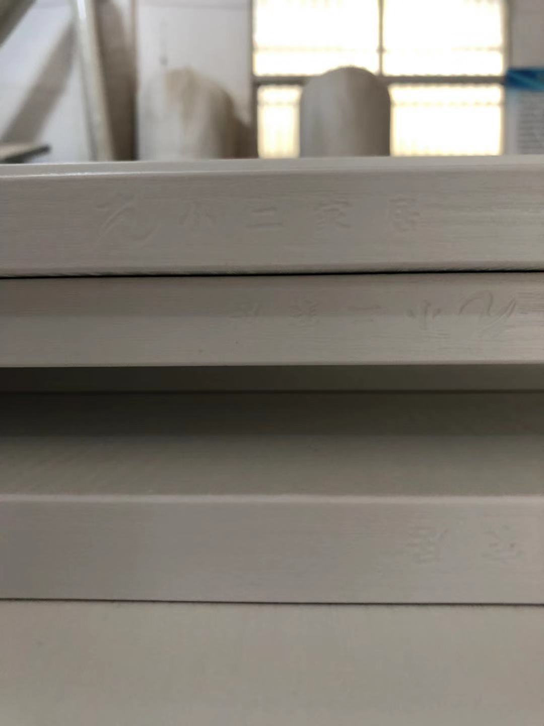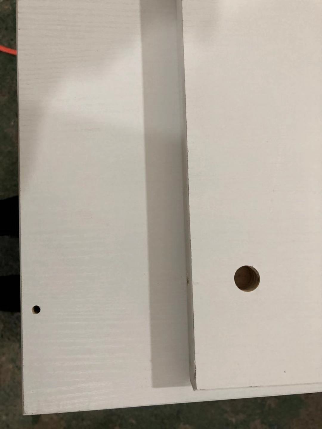 南次臥的柜子封好邊打好孔了,用專門的設(shè)備封邊打孔,封邊壓的緊實(shí),打的孔圓潤沒有爆邊~