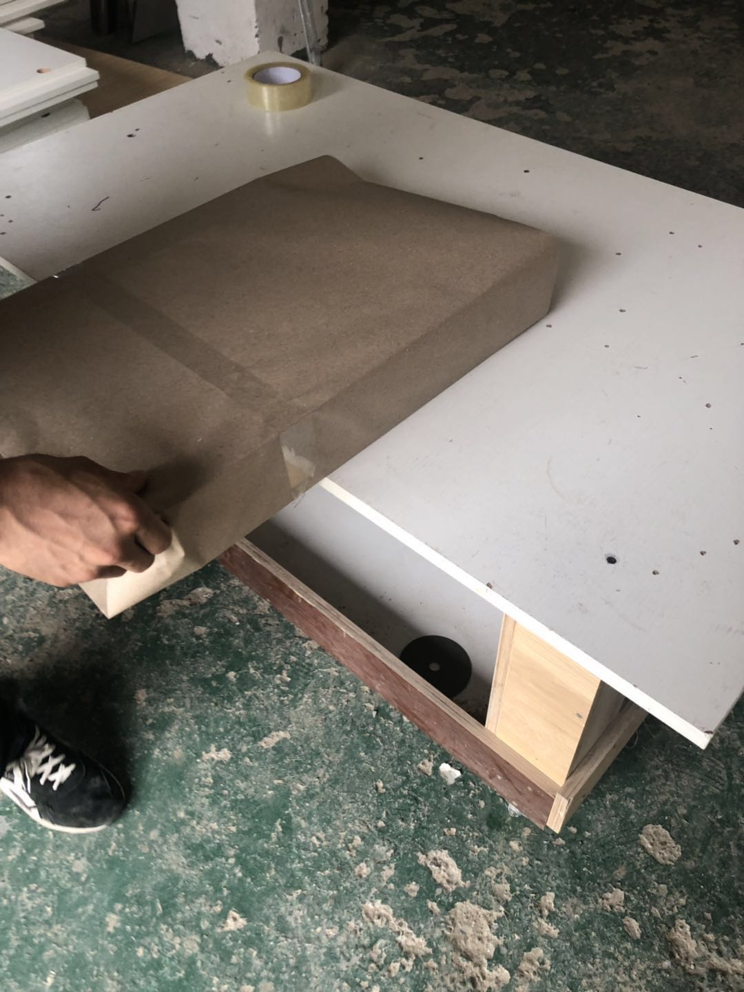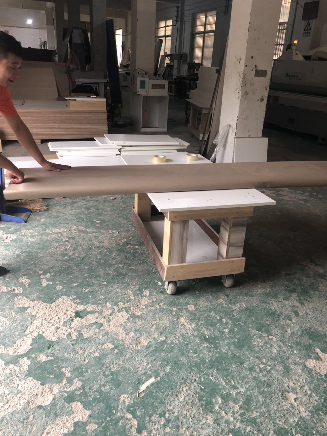 開(kāi)始制作了,板材使用平安樹(shù)實(shí)木多層仿古布紋E0級(jí)制作,真材實(shí)料,有高級(jí)的藍(lán)光防偽標(biāo)識(shí),因天氣下雨的原因,室內(nèi)有點(diǎn)暗拍出來(lái)的效果有色差,實(shí)物顏色以色卡上的顏色為準(zhǔn)。