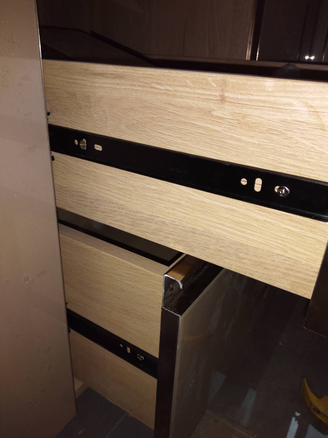 經(jīng)過(guò)三天的努力,安裝完畢,先發(fā)一些細(xì)節(jié),和居拉手,海蒂詩(shī)導(dǎo)軌,不銹鋼拉籃,諾米鉸鏈,ABS尼龍柜腳,師傅拍照技術(shù)越來(lái)越好了,整體效果挺漂亮的,原木色的柜子給人感覺(jué)溫馨,清爽,簡(jiǎn)簡(jiǎn)單單,業(yè)主大大的眼光真不錯(cuò),今天先更新到這里,打卡下班。