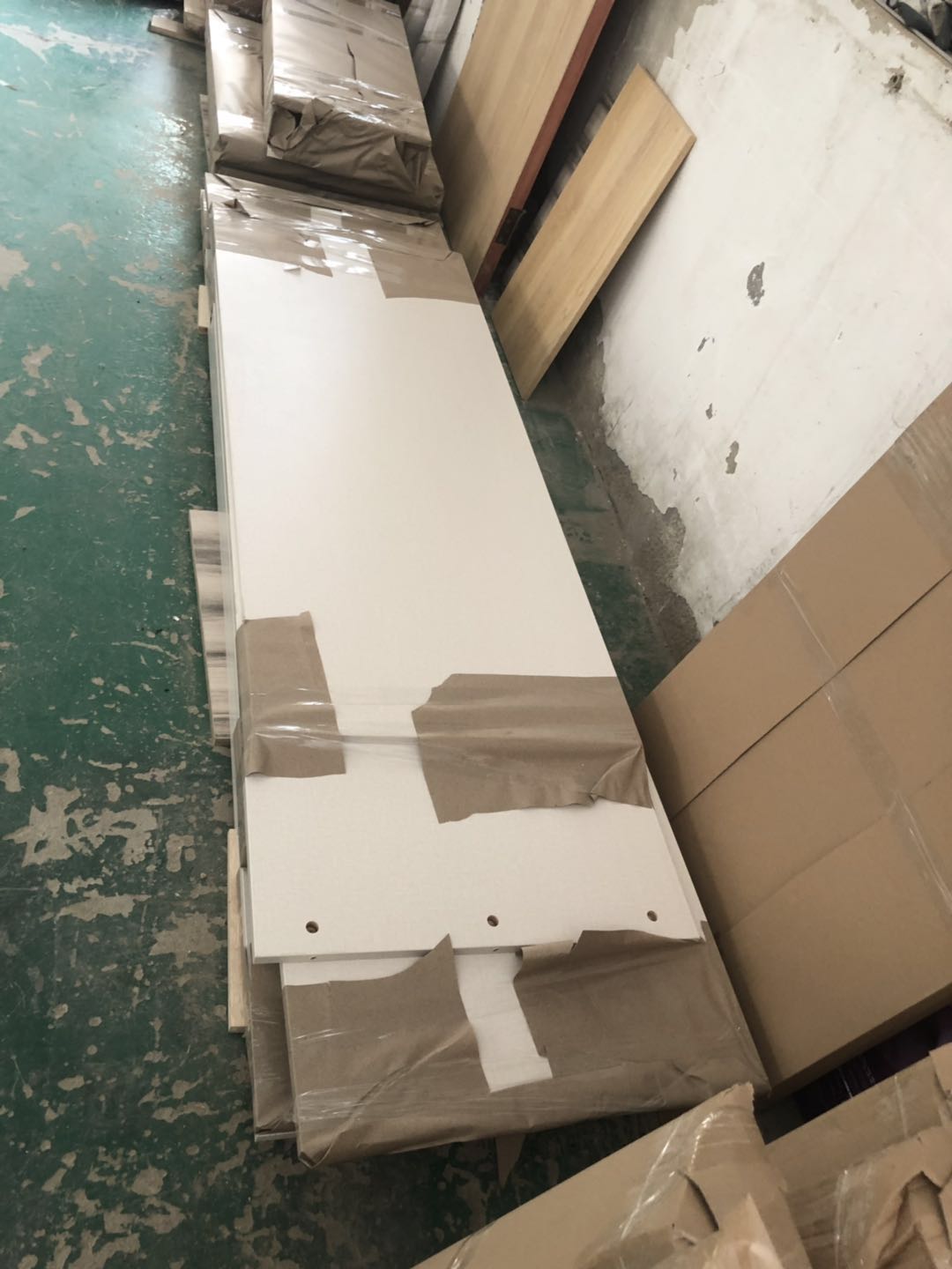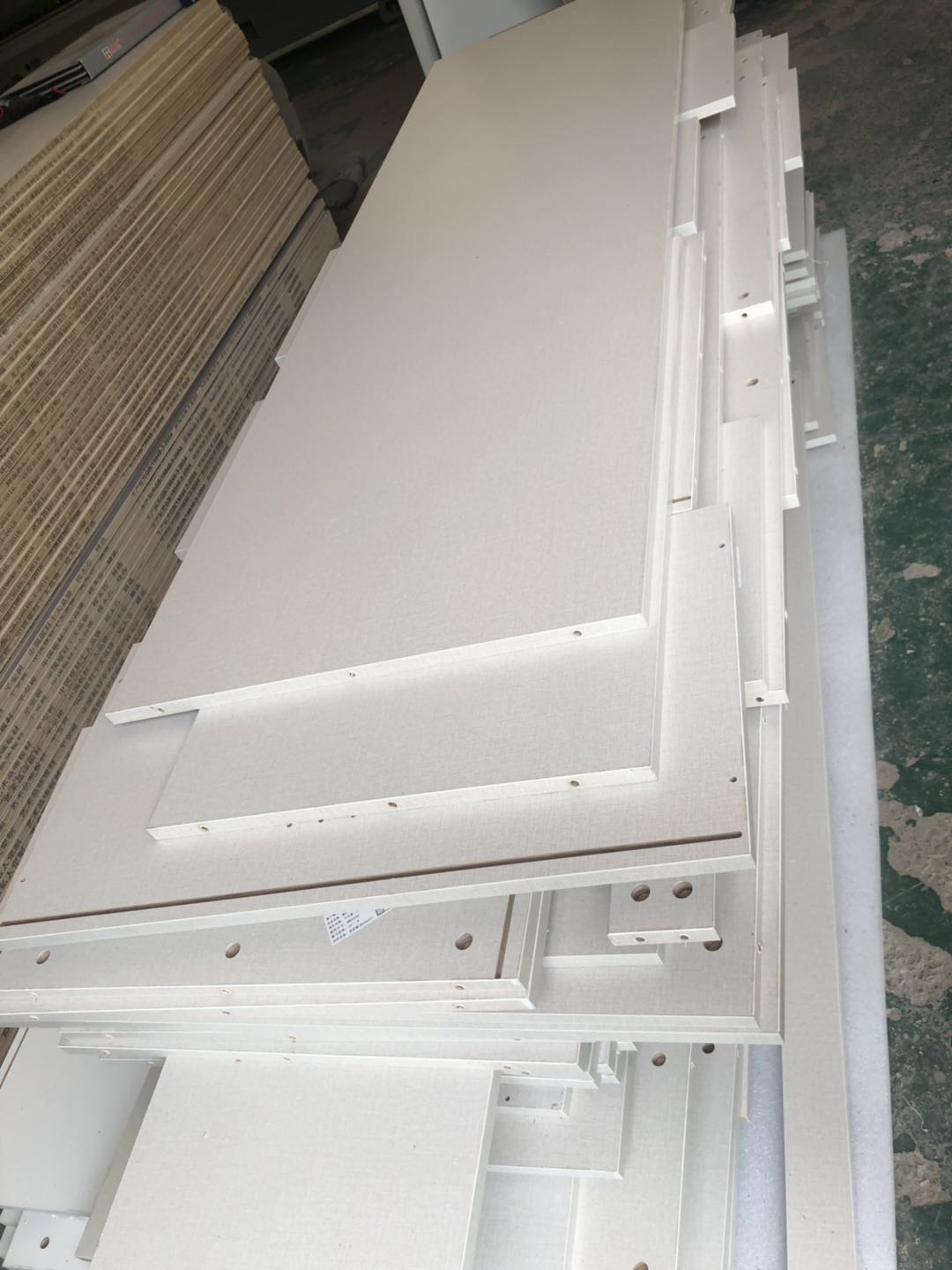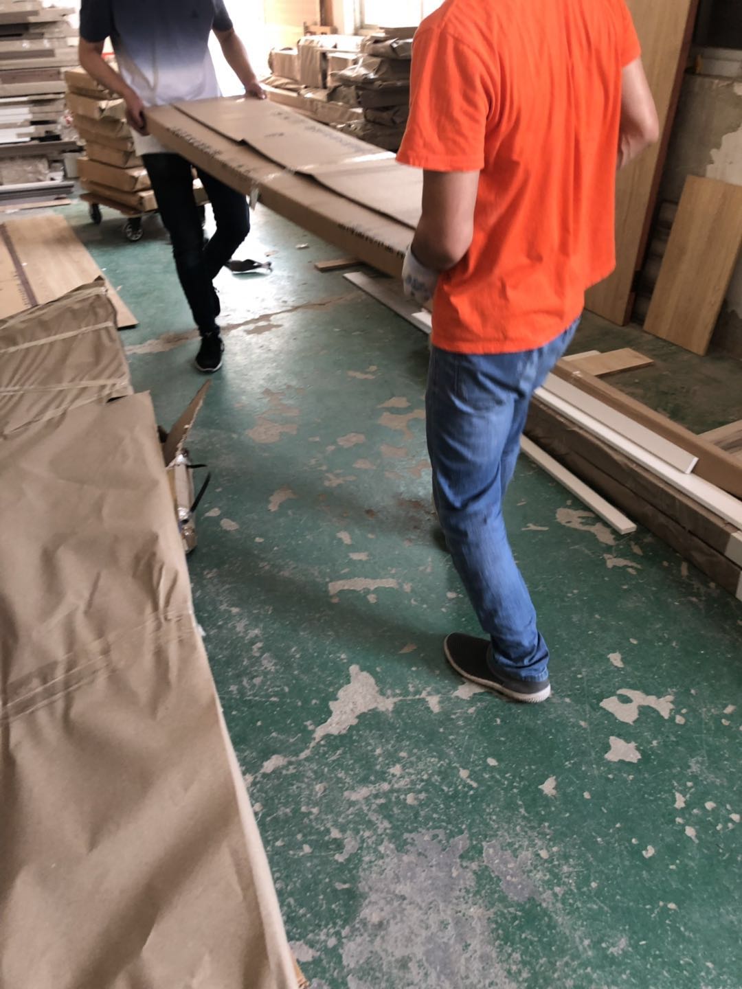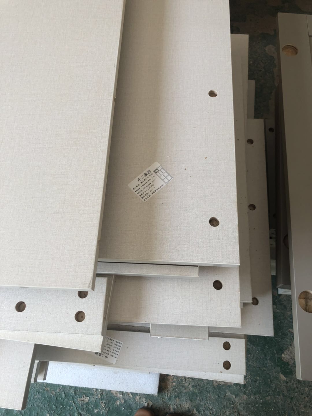 開始制作啦,裁板打孔中,圖1是陽臺(tái)吊柜,板材使用平安樹暖白色實(shí)木多層制作,有高級(jí)的藍(lán)光防偽標(biāo)識(shí)哦,圖4-6是衣柜的柜體板,板材使用平安樹皮紋-1實(shí)木多層制作,裁出來的板沒有爆邊~