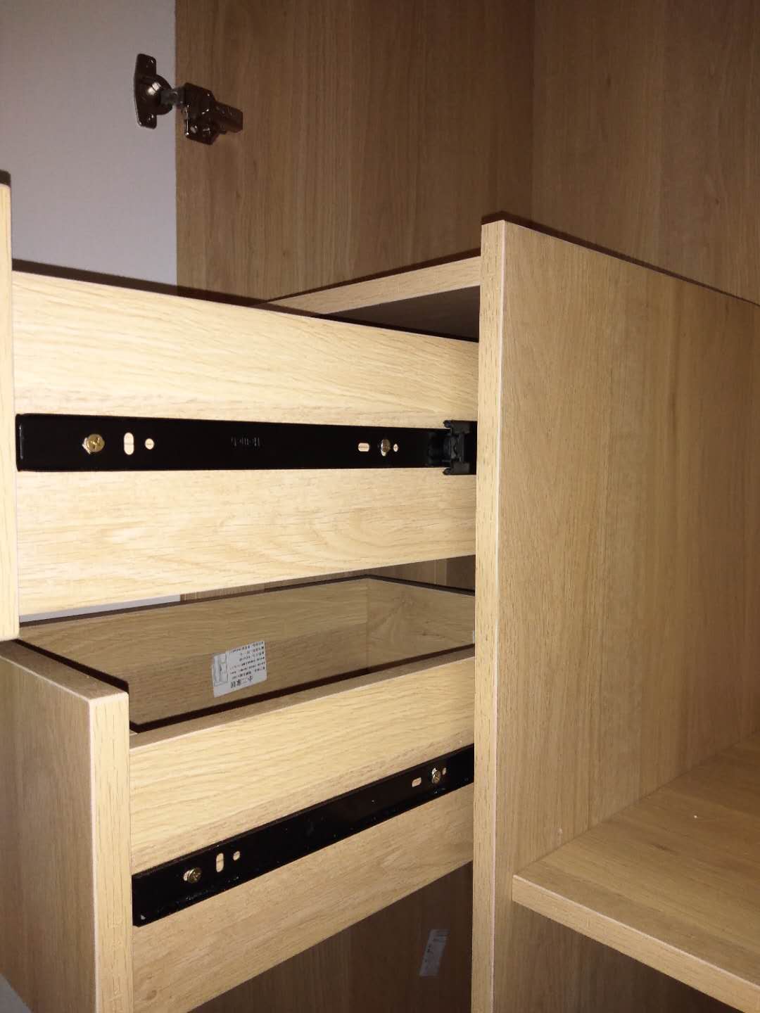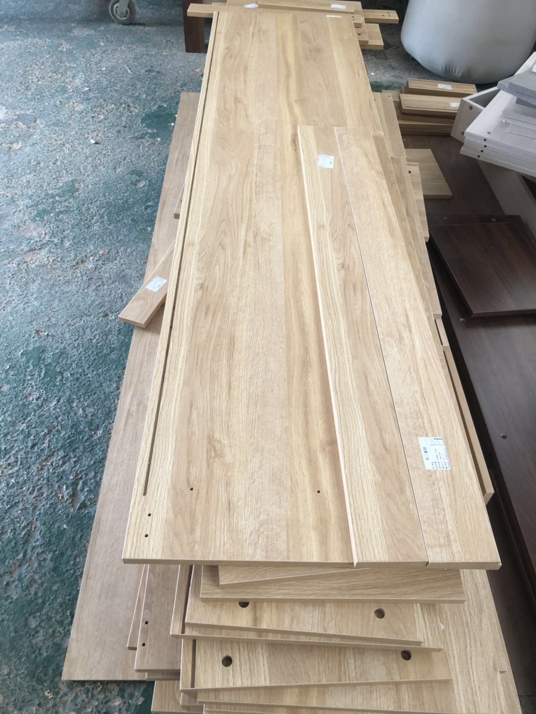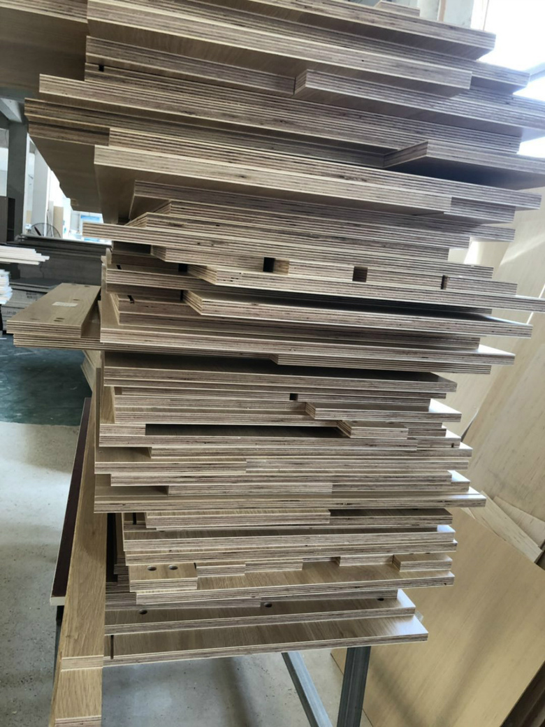 開始制作了,柜體板材使用平安樹實木多層清水橡木E0級制作,真材實料,有高級的藍光防偽標識哦。