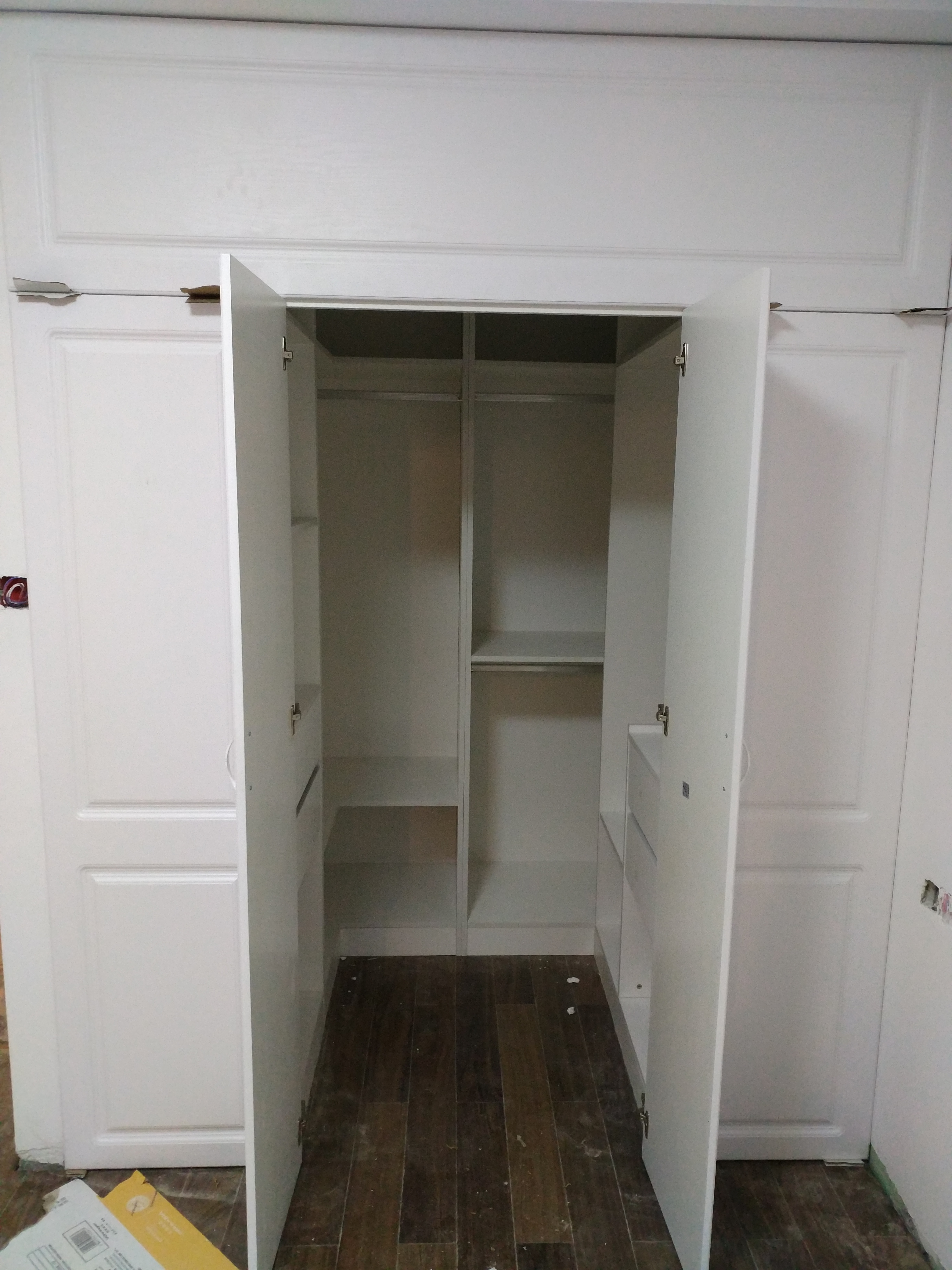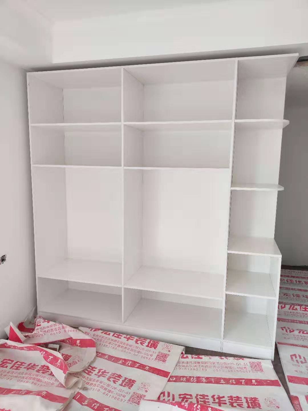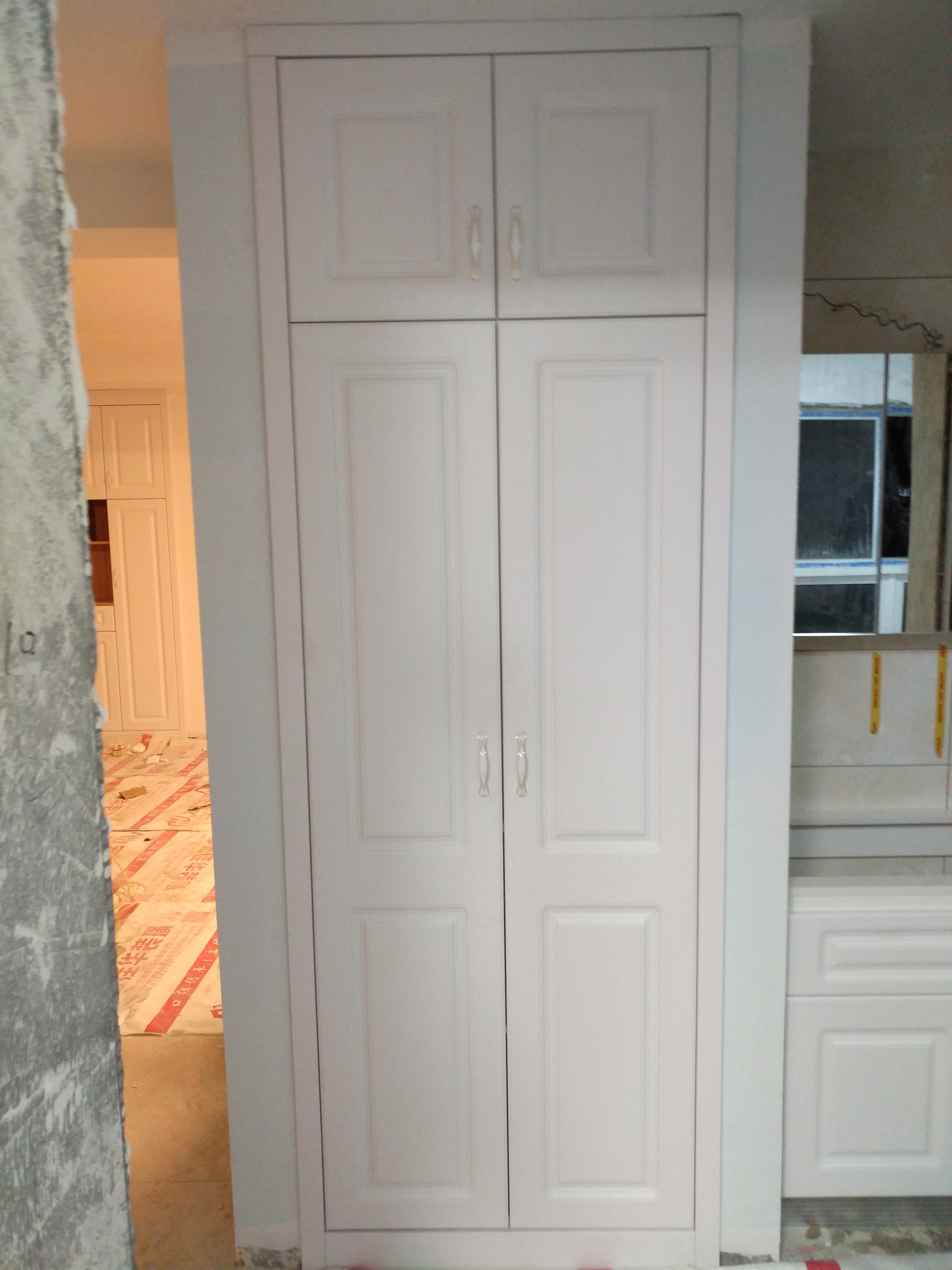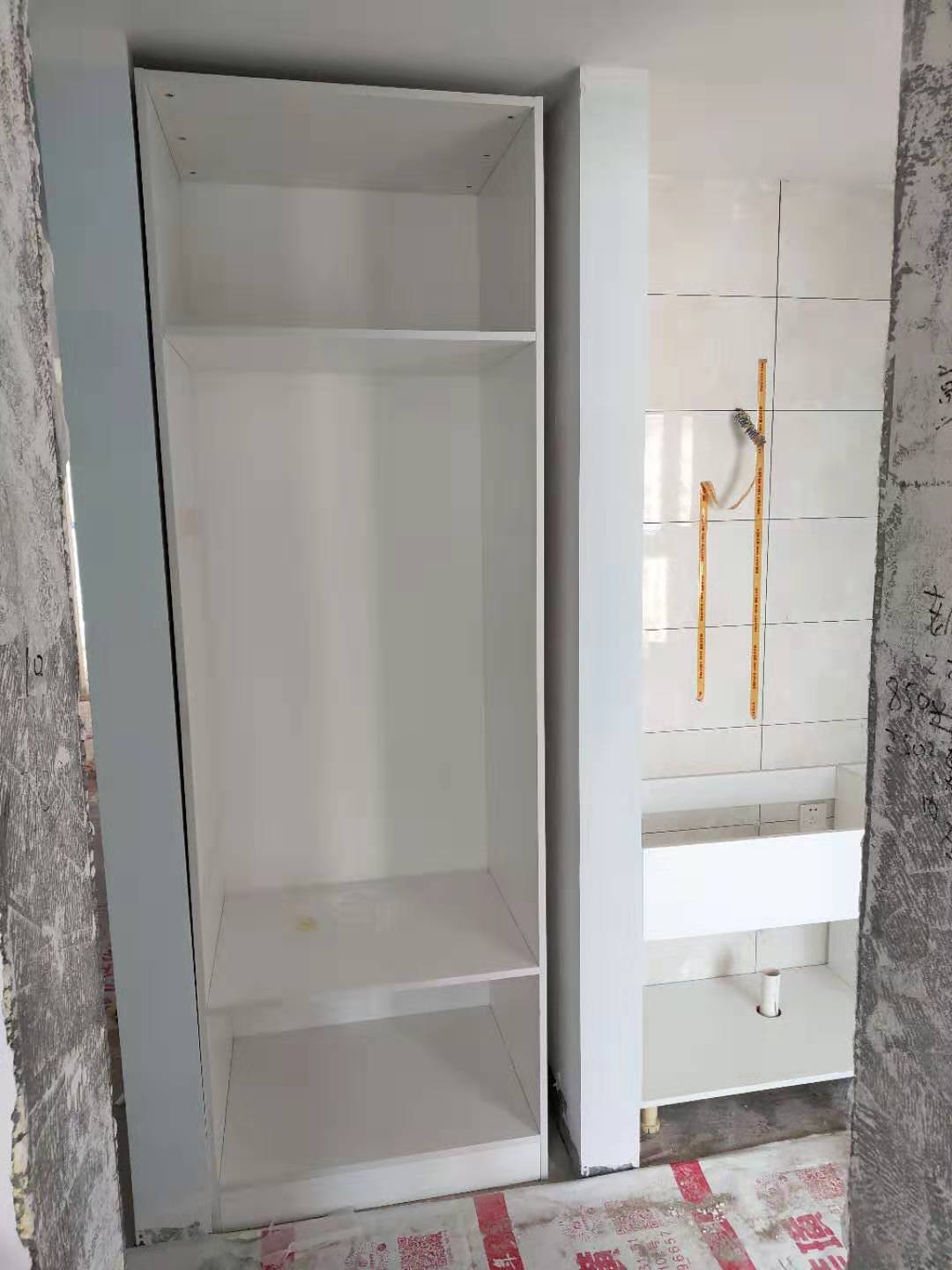 開始安裝啦,師傅們都很認(rèn)真,柜體都安裝好了。