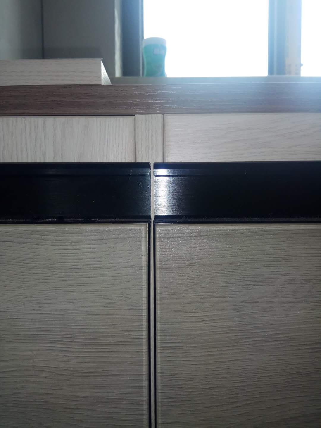 所有的柜子都裝好了,灰色門板加上黑色線條整體效果是不是很贊。
