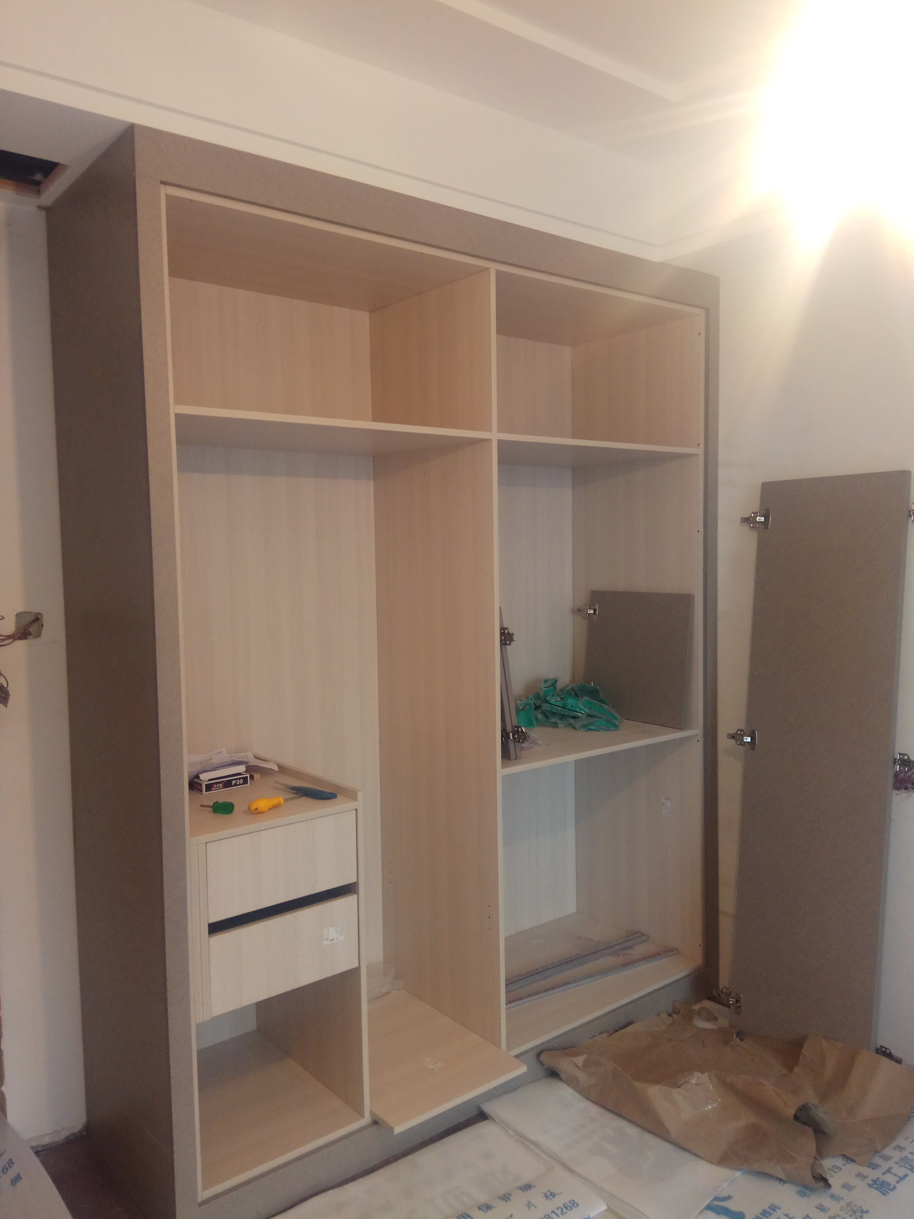 安裝中,柜體已經拼裝了一部分了,差不多明天能裝好,到時候再更新一波整體效果。