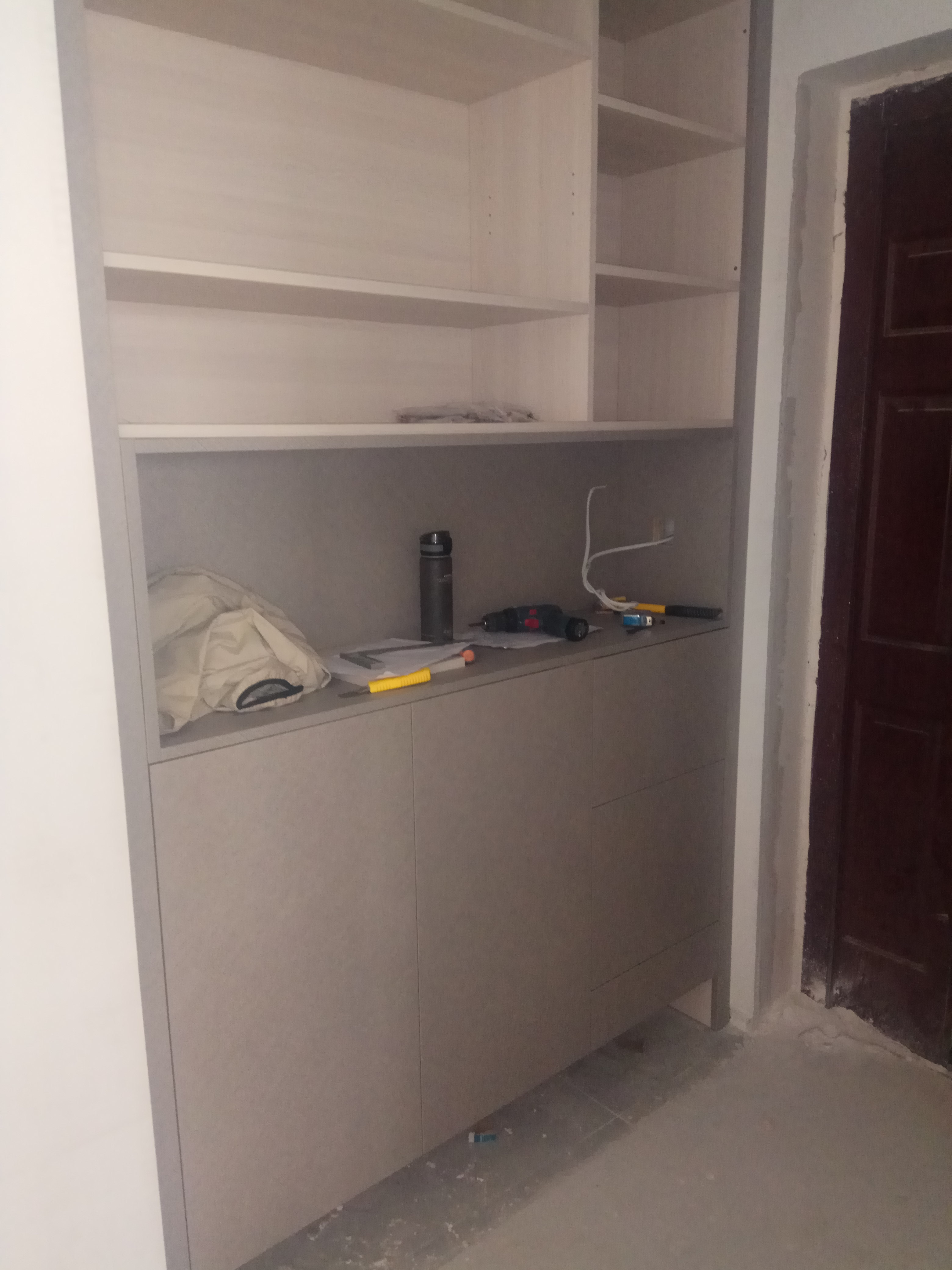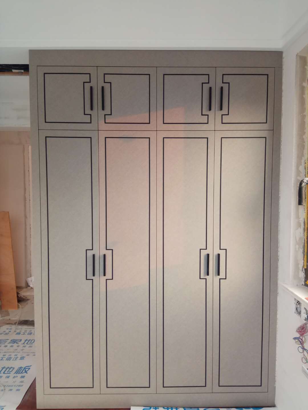 還在安裝中,業(yè)主大大家的柜子比較多,還要一點時間的,慢工出細活,師傅們比較細心,辛苦了。等柜門都裝好在來一波美圖。