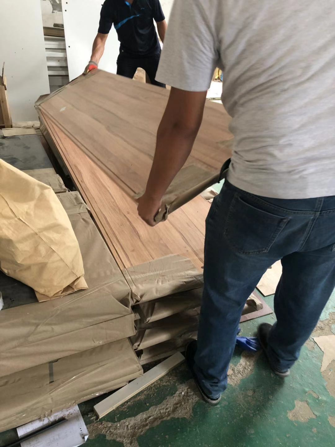 經(jīng)過師傅們幾天的努力,柜子的整體效果出來了,原木色配白色金典搭配。天氣炎熱,師傅們記得多喝點水,注意防暑哦!