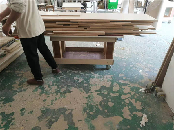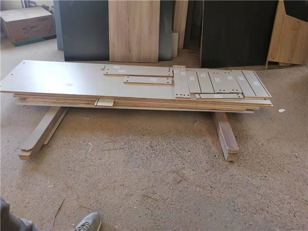 開始制作啦!柜體裁板中,板材使用平安樹實木多層板,有高級的藍光防偽標識哦