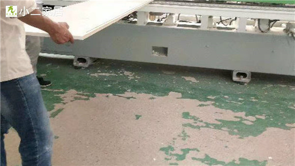 封邊條上帶有小二家居logo的哦,方便后期售后服務(wù)。師傅們分工合作,封邊打孔同時(shí)進(jìn)行,這樣就能早點(diǎn)送貨到客戶家啦!