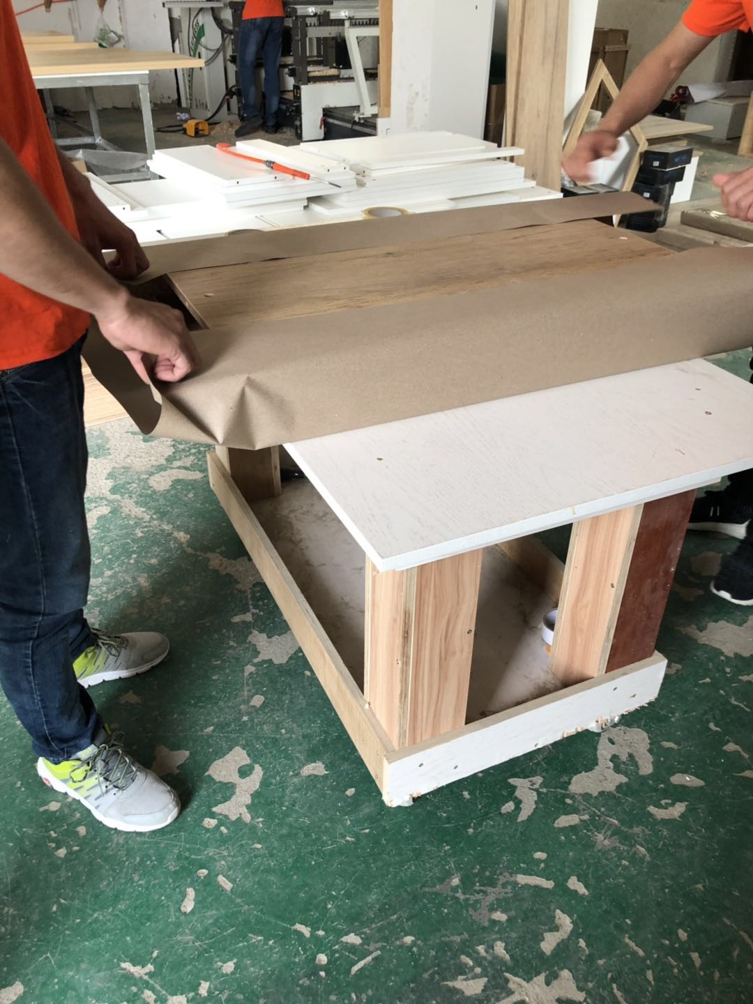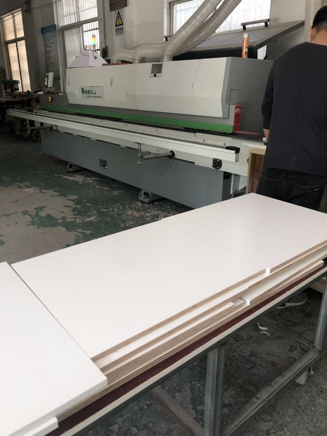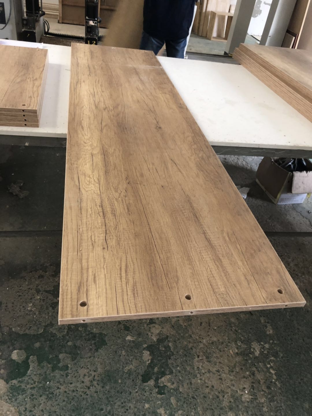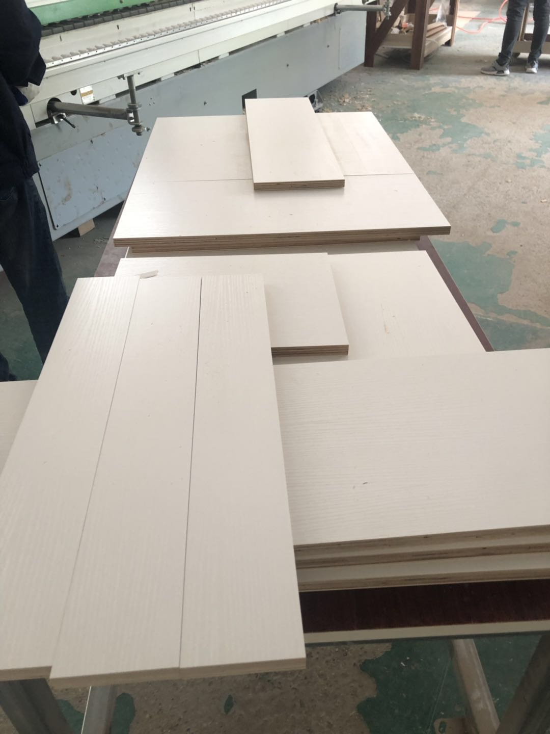 開始制作啦,櫥柜,浴柜,洗衣柜裁板中,專業(yè)的設備,沒有爆邊~板材使用平安樹E0級暖白色制作,有高級的藍光防偽標識。