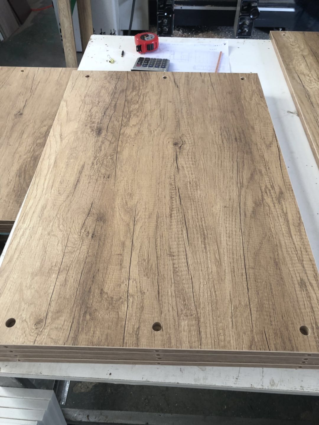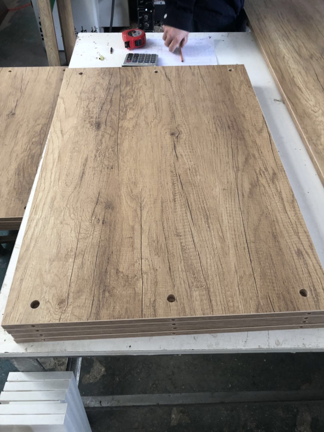衣柜開始打孔啦,不得不說師傅們還是挺速度的,專業(yè)設備打孔,打出來的孔圓潤,沒有爆邊~