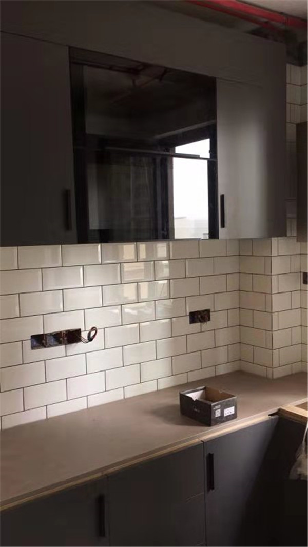 師傅安裝告一段落,大家看看安裝效果吧!灰玻柜門顏值很高啊,整體都是很干凈利落的設計。