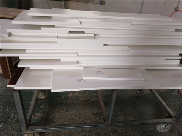 封邊完成,封邊采用法國波士熱熔顆粒膠,設(shè)備溫度達(dá)到200°C封出來的邊牢固,沒有爆邊,完美無瑕。每塊板上都貼有小標(biāo)簽,方便后期安裝師傅安裝,封邊條上都帶有小二家居logo的哦!方便后期售后。