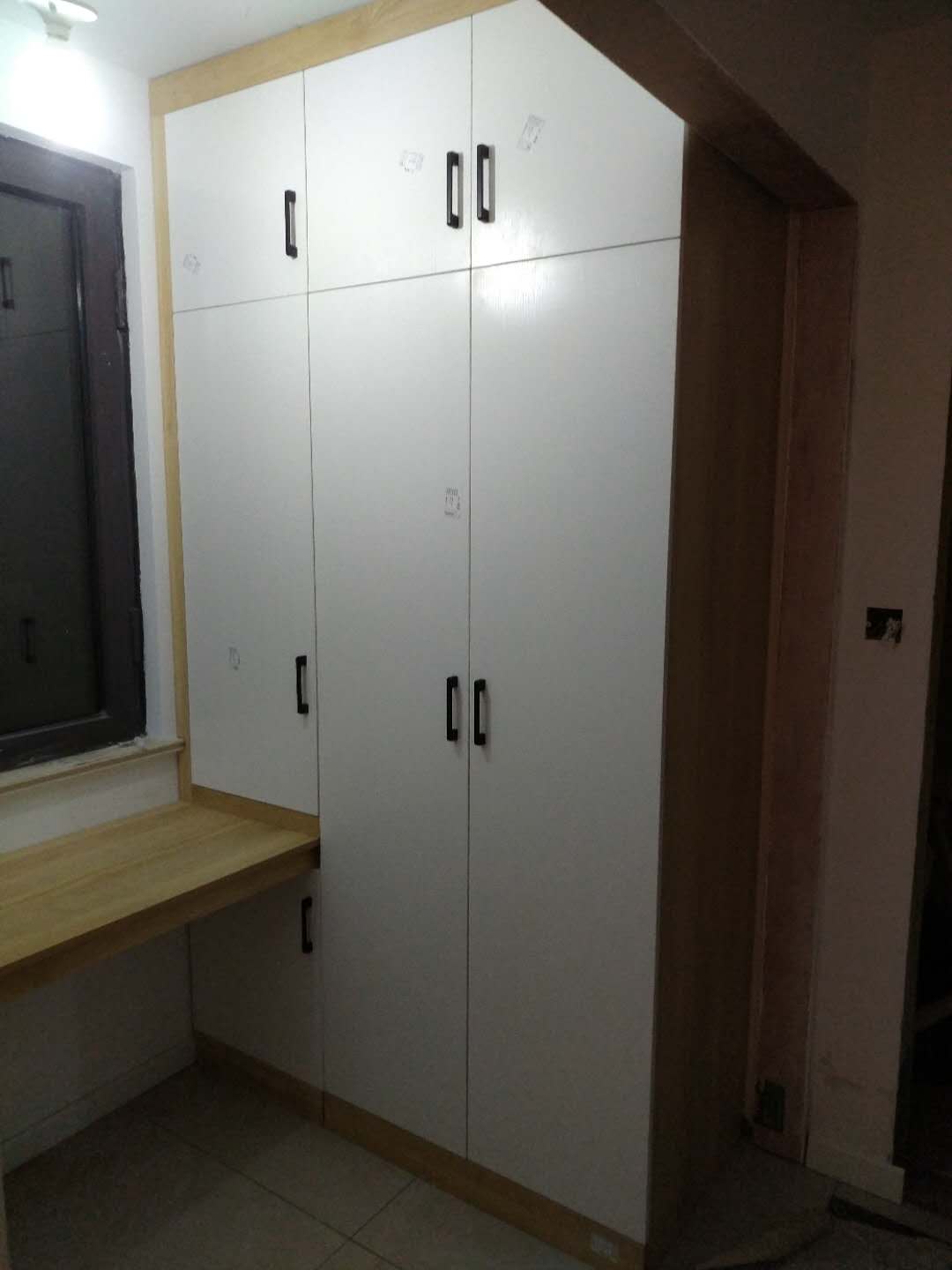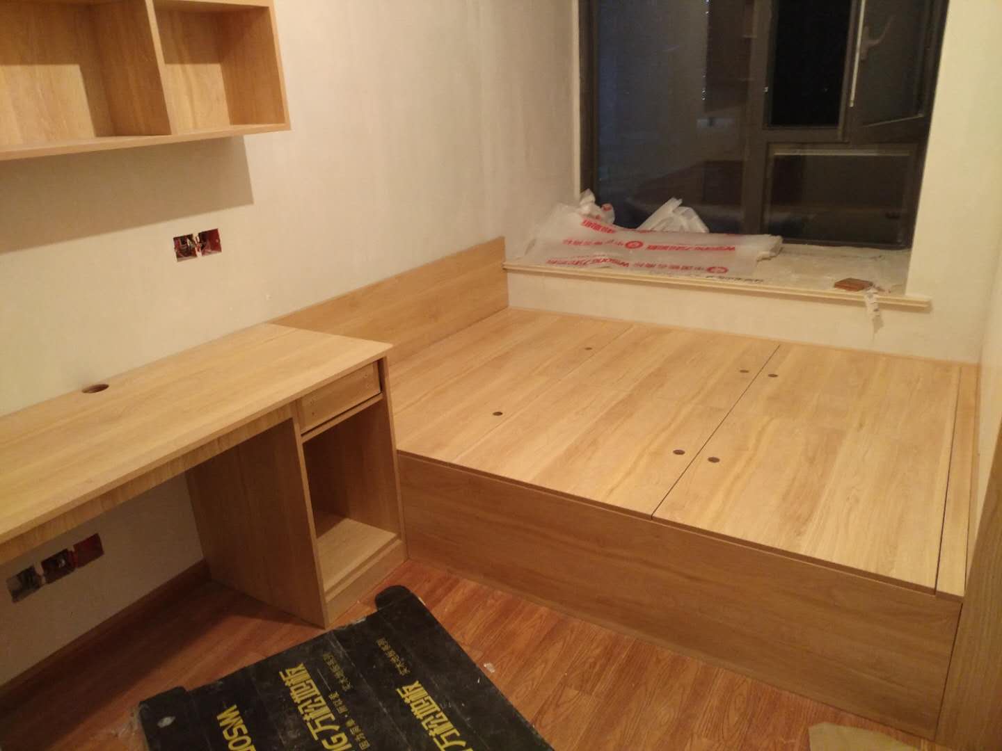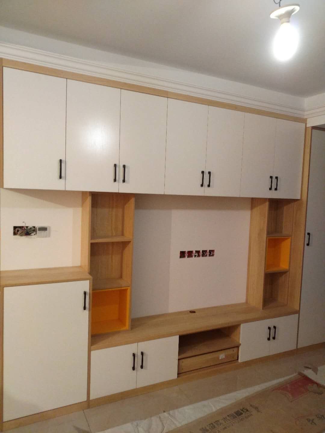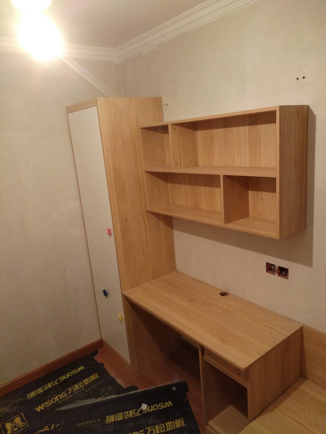 安裝中,不得不說師傅還是蠻給力的,原木色柜體已經(jīng)拼裝的差不多了,等柜門裝好在上一波整體效果。