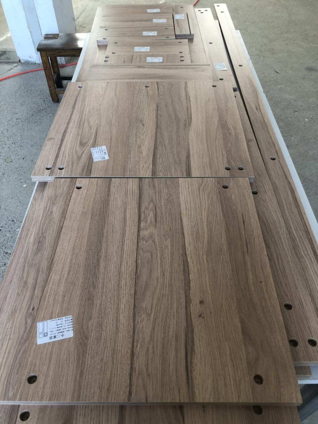 開(kāi)始制作了,專業(yè)設(shè)備裁板和打孔,板材使用平安樹(shù)實(shí)木多層板制作,真材實(shí)料,有高級(jí)的藍(lán)光防偽標(biāo)識(shí)。