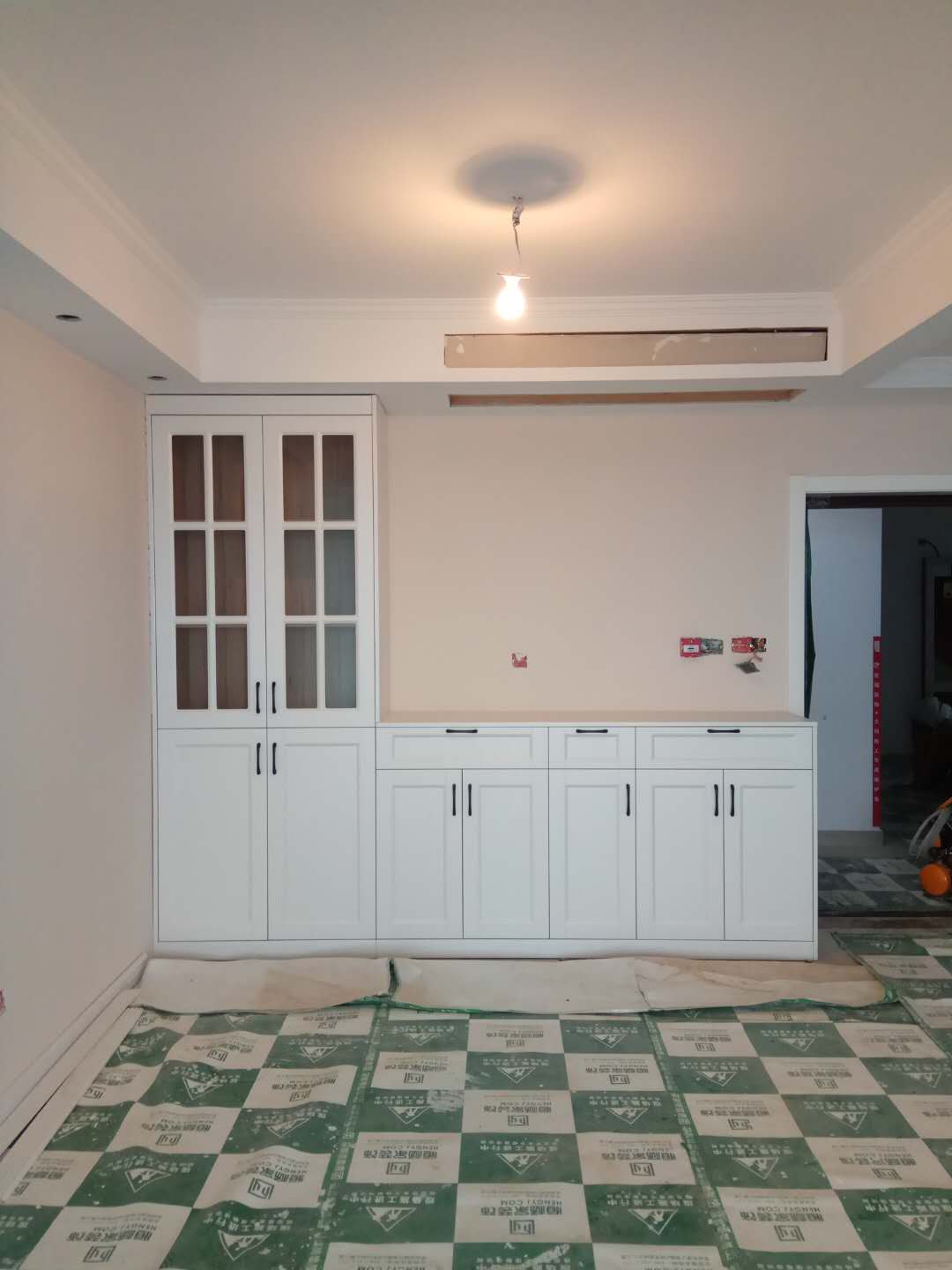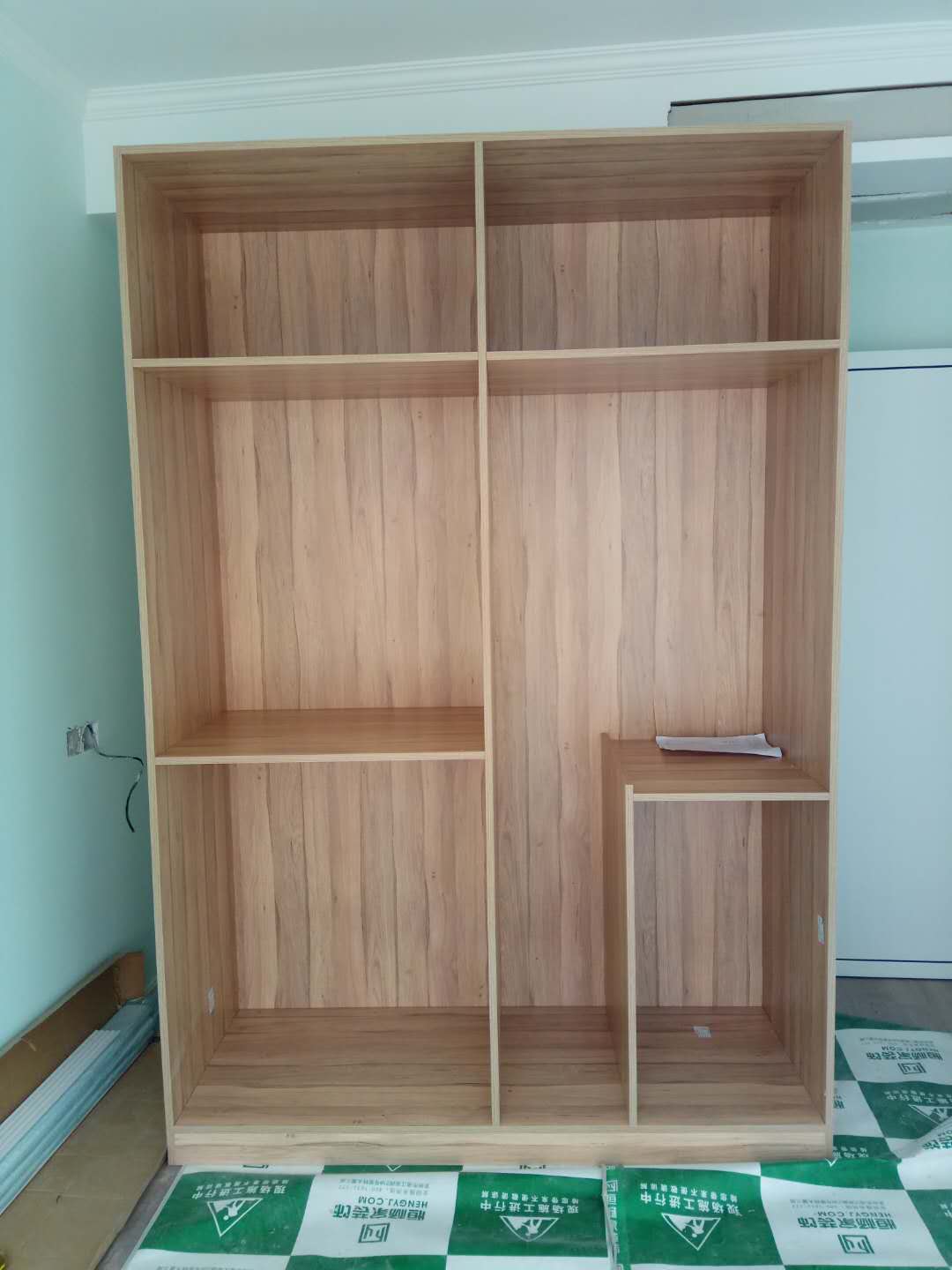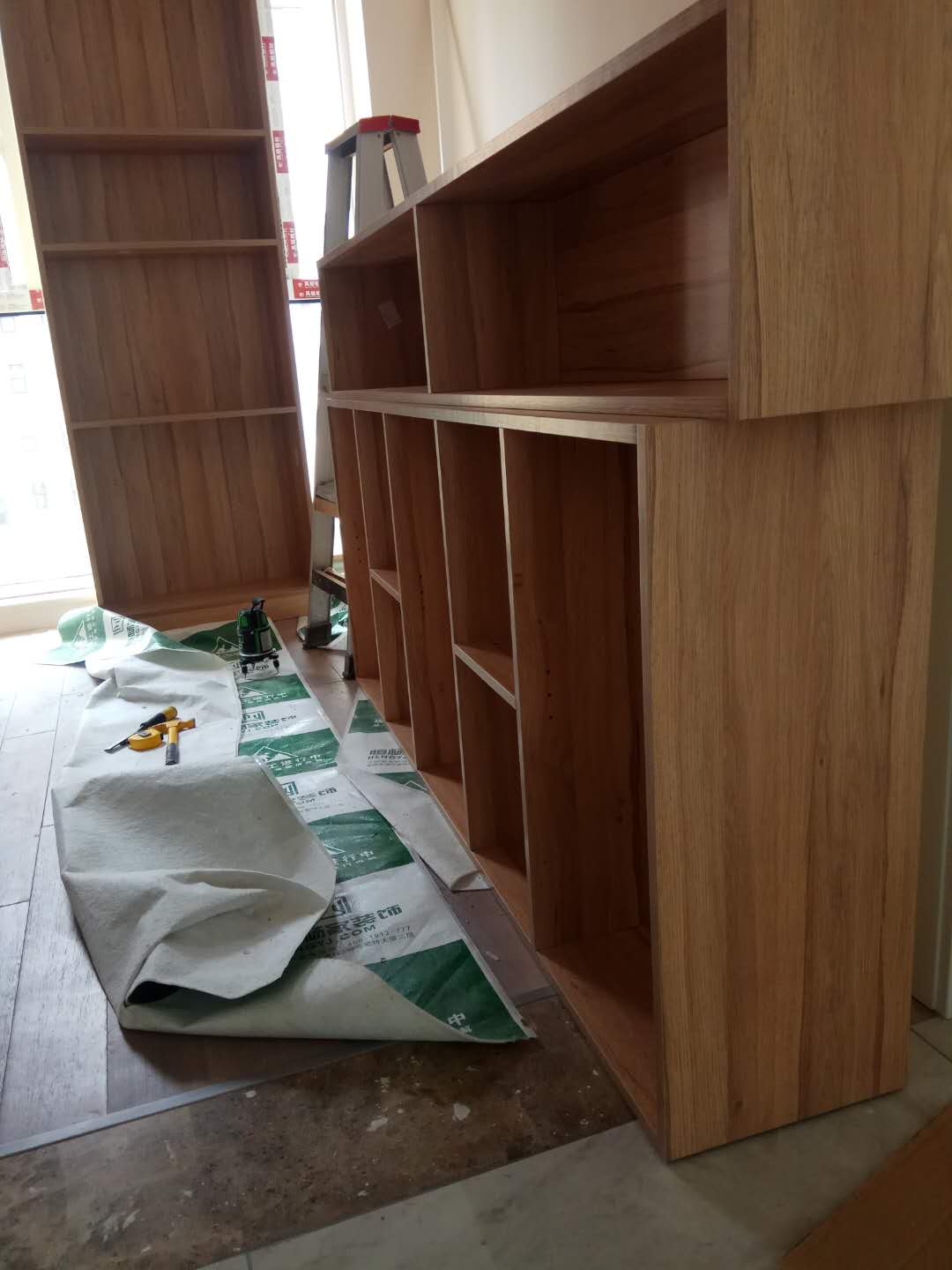 安裝中,柜體板已經(jīng)拼裝完工了,還差門板,大概明天就裝好了,一起期待終成果吧。