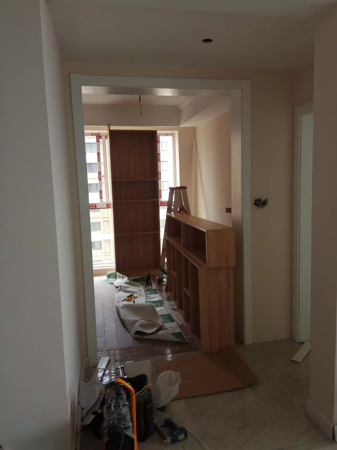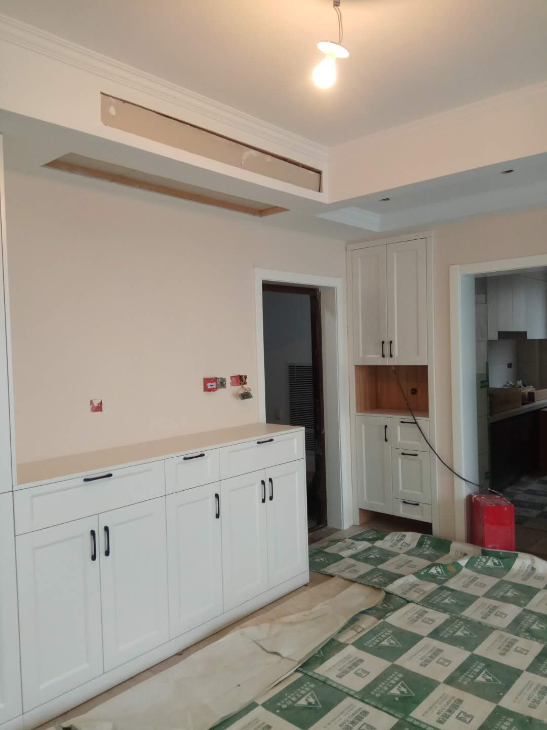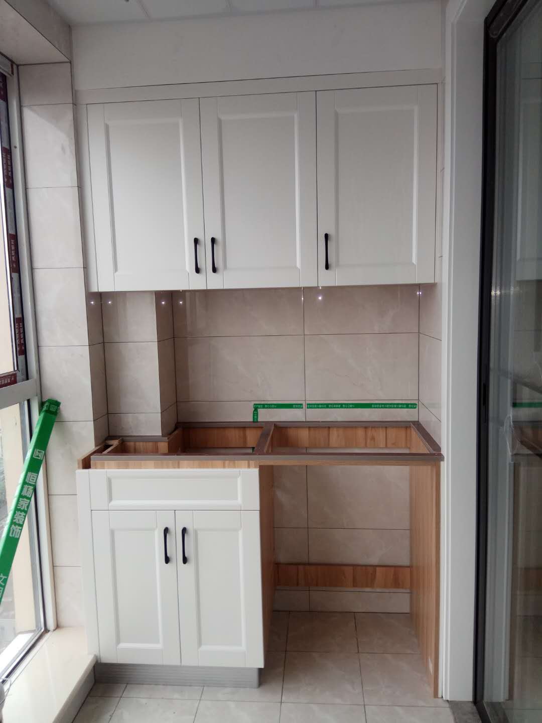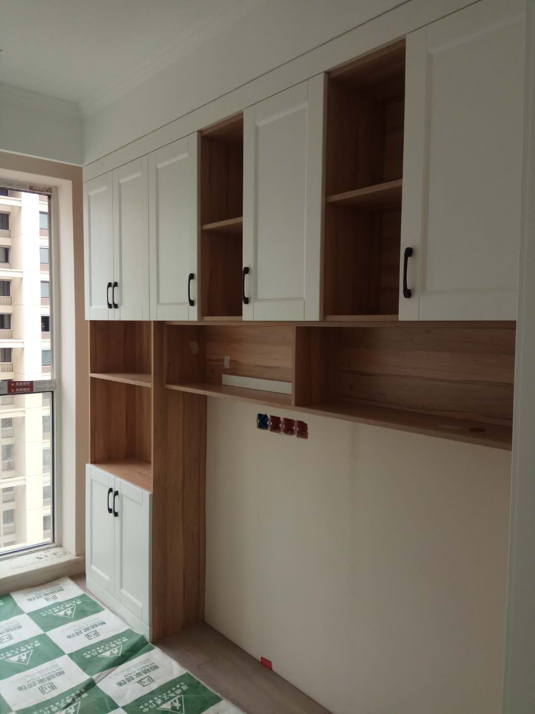 安裝中,柜體板已經(jīng)拼裝完工了,還差門板,大概明天就裝好了,一起期待終成果吧。