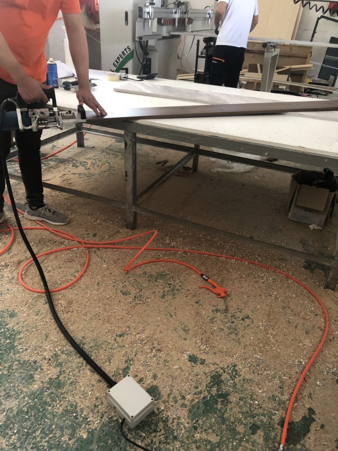 柜體封完邊了,側(cè)邊還需打孔,待打包