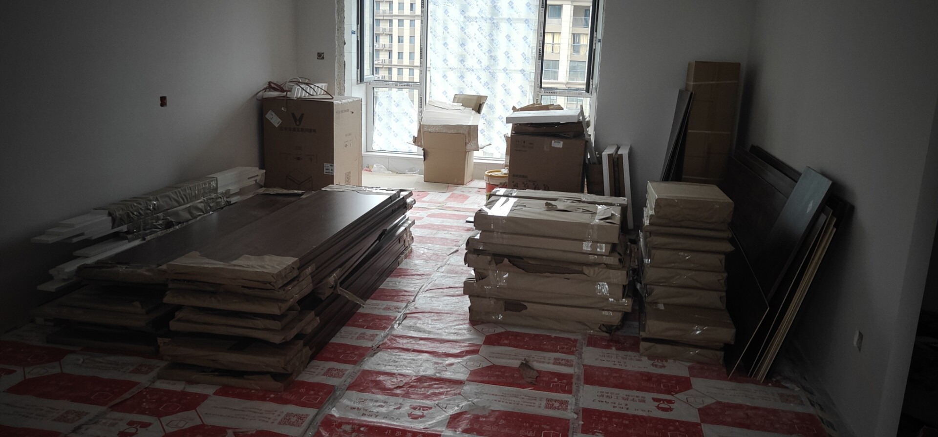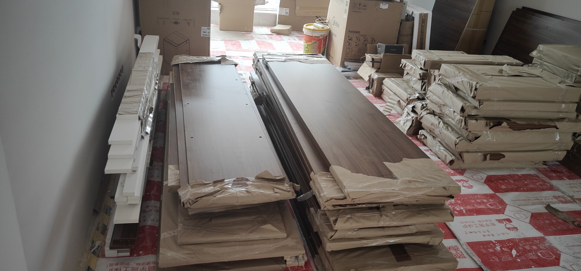 滿滿一車貨已經(jīng)安全送到業(yè)主家里去了,,擺放整齊等待安裝。