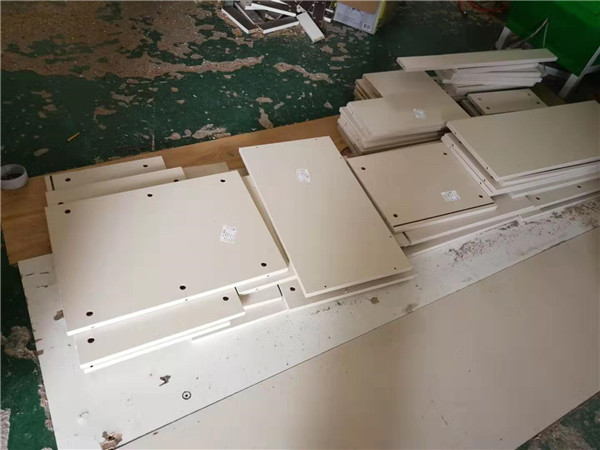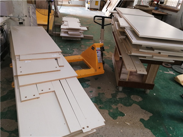 開始封邊咯!客戶家的柜子有點小多哦。封邊采用法國波士熱熔顆粒膠,設(shè)備溫度達(dá)到200°C封出來的邊牢固,沒有爆邊,完美無瑕。每塊板上都貼有小標(biāo)簽,方便后期安裝師傅安裝。