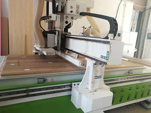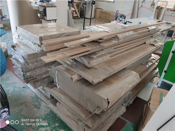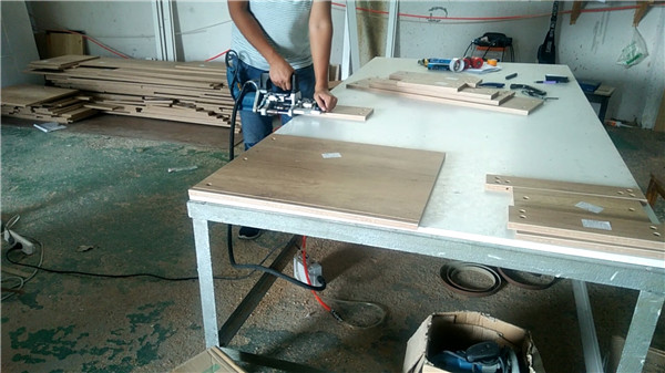 鐺鐺鐺,客戶家有新進展啦,門板倒角中(四邊倒角),都是師傅們一塊一塊操作的,辛苦了。