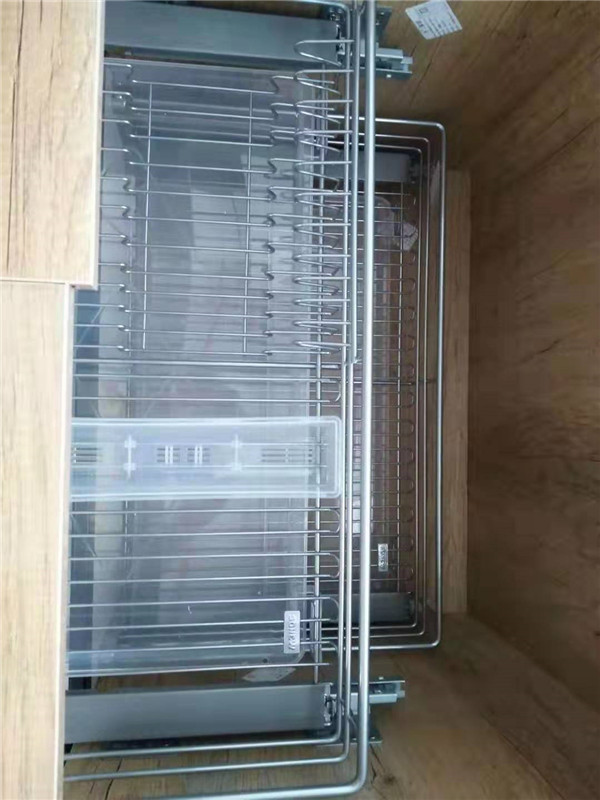 客戶家廚房窗戶比較小,采光不是很好,所以櫥柜門板采用的是晶鋼門,既好打理,整體效果也顯的不暗,拉籃三件套配的是諾米銀爵,柜腳ABS尼龍。
