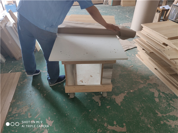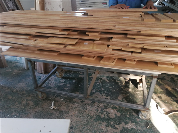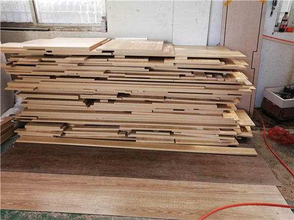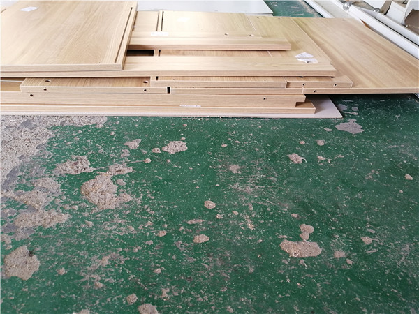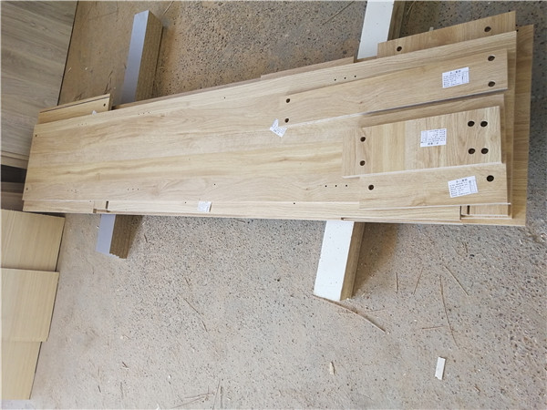 開始制作啦!柜體裁板中,專業(yè)設(shè)備裁板,沒有爆邊。板材使用平安樹實木多層板,