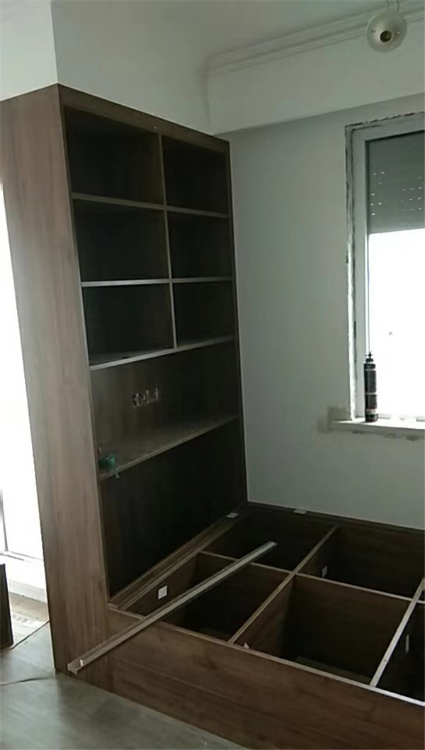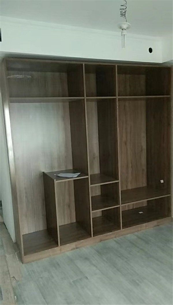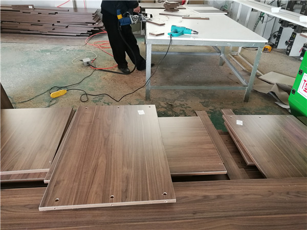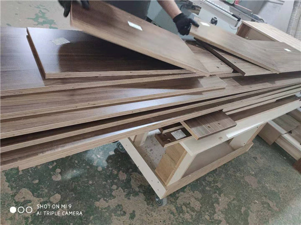 開始制作啦!柜體裁板中,板材使用平安樹實木多層板,大富大貴E0級制作,有高級的藍光防偽標識哦