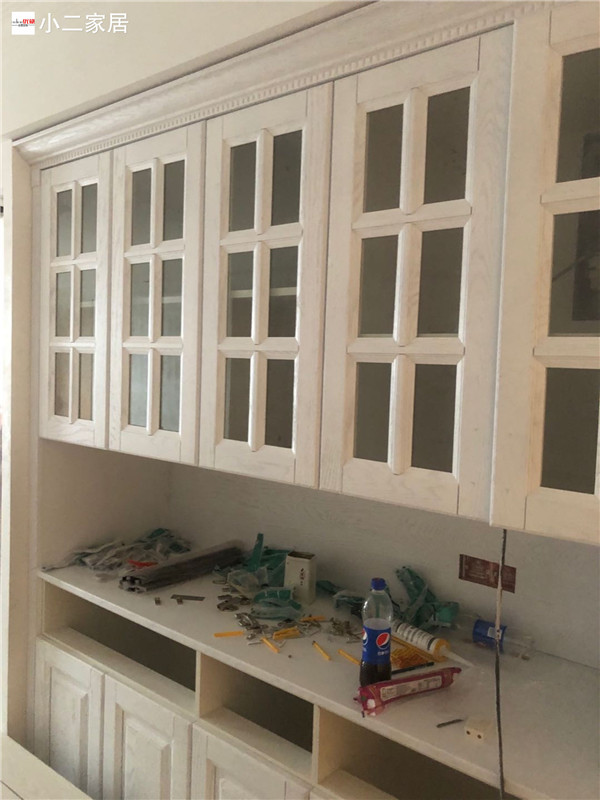 【小二跟單2641】多寶大廈,橡膠木柜門(mén)加實(shí)木多層柜體櫥柜等,安裝完畢