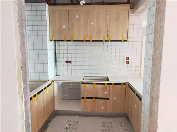 【小二跟單2589】蔚藍(lán)天地,雙飾面柜門加實(shí)木多層柜體櫥柜等,安裝完畢