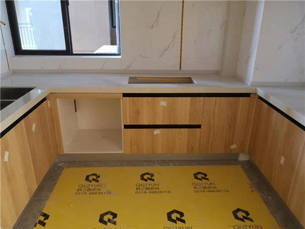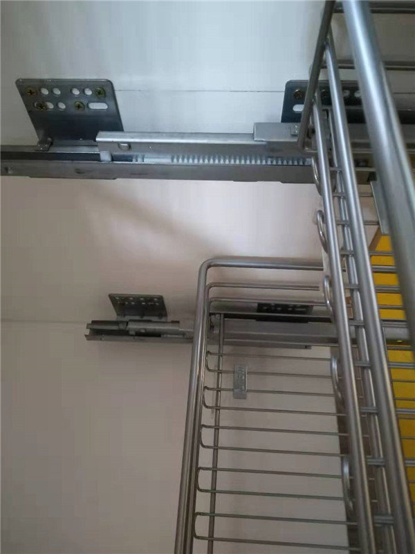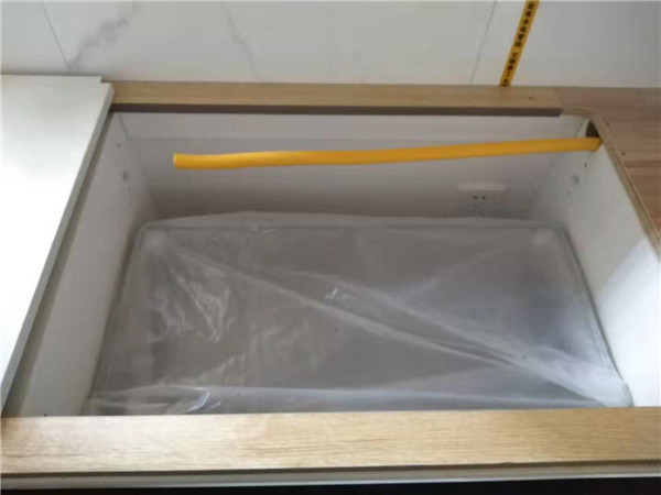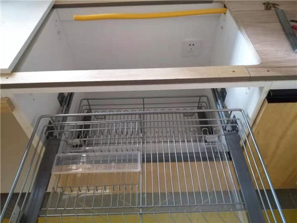 五金:海蒂詩(shī)導(dǎo)軌,諾米鉸鏈,諾米氣撐,諾米拉籃,ABS尼龍柜腳,索菲亞掛衣架等。水槽都鋪有防水錫紙,拉籃也都用塑料膜保護(hù)起來(lái)了,防止灰塵進(jìn)入影響導(dǎo)軌的拉伸。