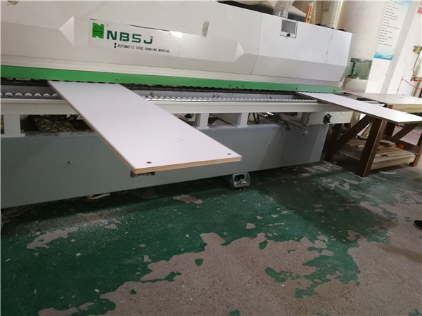 開(kāi)始封邊啦,封邊采用法國(guó)波士熱熔顆粒膠,設(shè)備溫度達(dá)到200°C封出來(lái)的邊牢固,沒(méi)有爆邊,完美無(wú)瑕。每塊板上都貼有小標(biāo)簽,