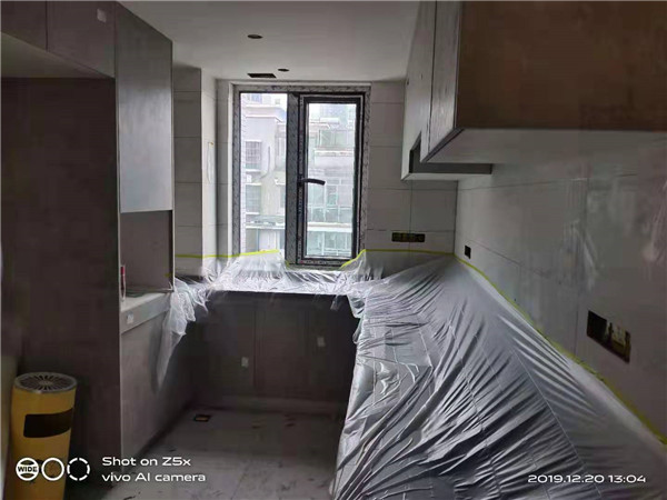 櫥柜采用的是巖板臺(tái)面,顏值是真的高,安裝好后都保護(hù)起來(lái)了,請(qǐng)看成品圖