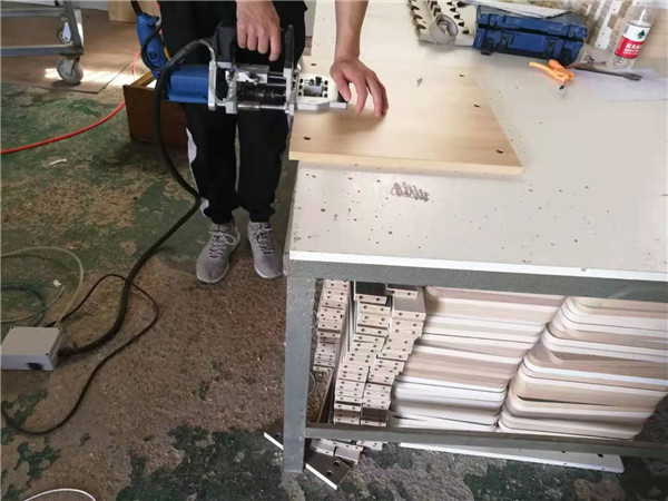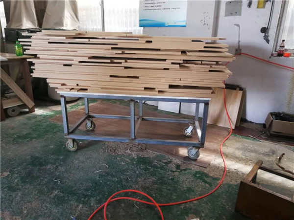 開始制作啦!柜體裁板中,板材使用平安樹實(shí)木多層板,清水橡木E0級制作,有高級的藍(lán)光防偽標(biāo)識哦。