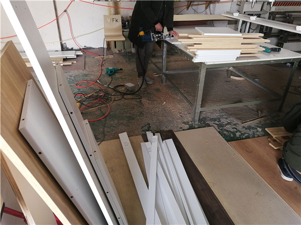 開始制作啦!柜體裁板中,板材使用平安樹實(shí)木多層板E0級(jí)制作,進(jìn)入生產(chǎn)就快啦