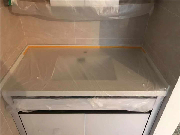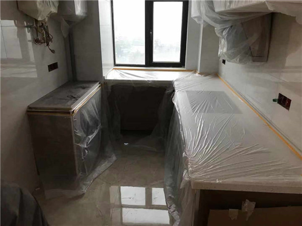 臺(tái)面安裝完畢,還有一小塊臺(tái)面師傅再處理一下就安裝好