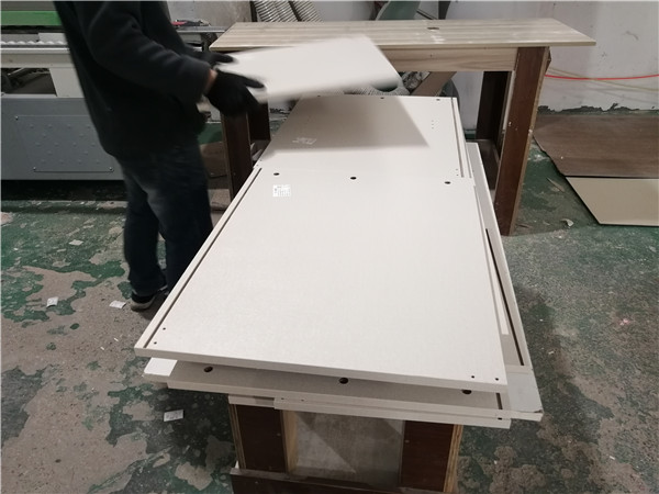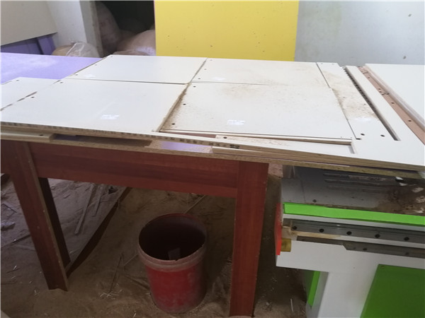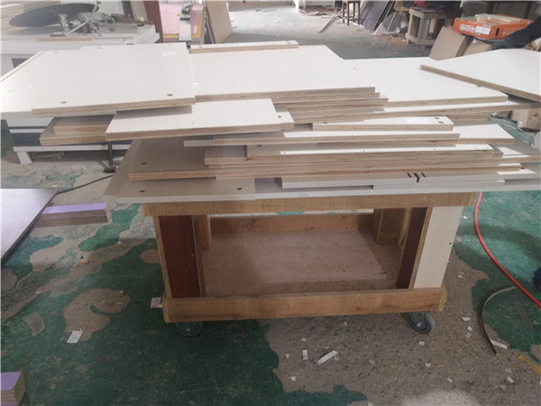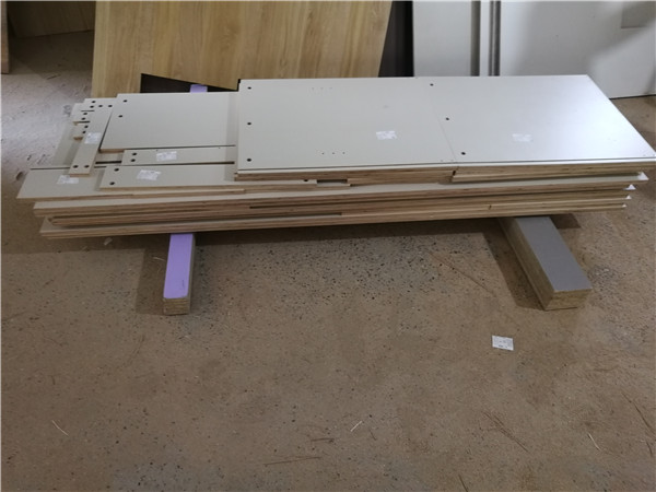開始制作啦!柜體裁板中,板材使用平安樹實木多層板皮紋E0級制作,有高級的藍光防偽標(biāo)識哦